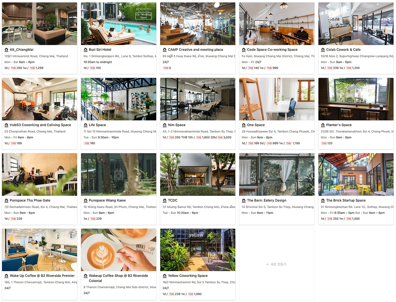 - 노션에 정리한 코워킹 스페이스 목록 (데일리 패스 사용 가능/2023년 3월 기준)