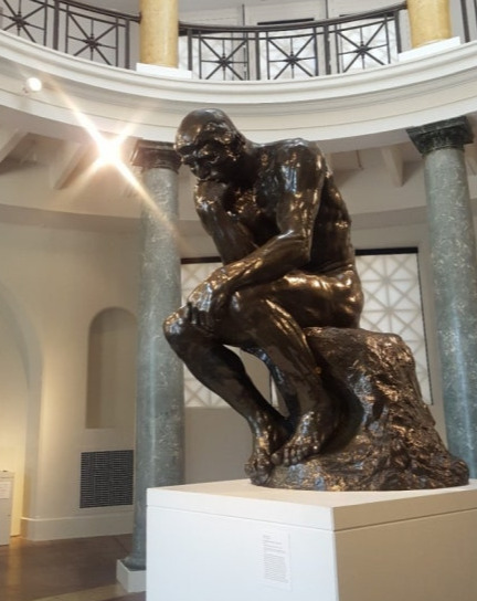 문득 미국 스탠퍼드대학교 미술관에서 마주했던 ‘로댕’의 <생각하는 사람>이 떠올랐다. 두 작품 모두 인간의 내면을 탐구하는 깊은 사유의 순간을 포착한 듯하지만, 그 표현 방식과 분위기는 사뭇 다르다.