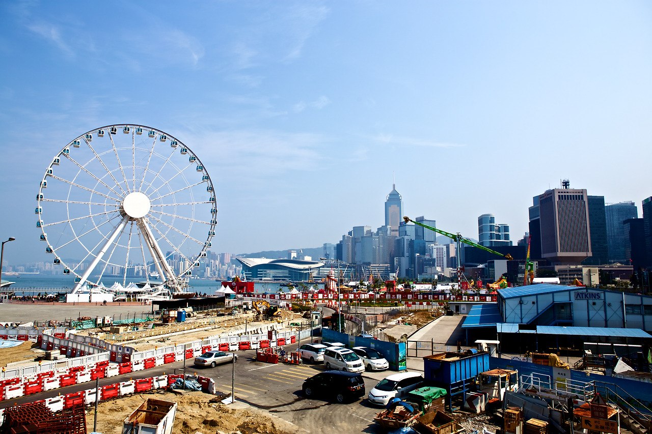 그렇게 약 5분가량 페리를 타고 홍콩섬에 도착했을 때 가장 눈에 띄는 것은 관람차였다. 타보진 않았지만, 이 또한 홍콩에서 나름 유명한 관광(?) 요소 인 것 같았다. 선착장에서 내려 홍콩의 심장으로 들어갈 때, 긴 통로 왼쪽 오른쪽으로 높은 건물들이 자리 잡고 있었다.