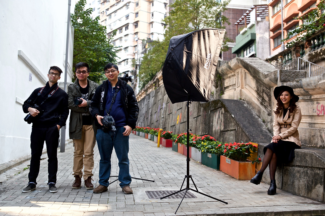 길을 헤매는 건지 방황하는 건지 알 수 없게 걷다 반가운 사람들을 만났다. 이들은 나를 알지 못했고 나도 이들을 알지 못했지만, 5분 채 안 되는 대화를 나누기위해서는 카메라 하나로 충분했다. 이때까지도 나는 홍콩에서 '무엇을 해야겠다'거나 하는 목적은 없었다. 그저 사진을 찍는 사진사들의 사진이 없음을 알기에, 사진 찍는 사람을 사진 찍는 사람이 우연히 찍어주는 것도 나쁘지 않겠다고 생각했다. 다행히 그들은 나의 생각을 재밌게 받아들였다. 디지털 카메라의 장점이자 강점은 바로 사진을 확인할 수 있다는 것일 텐데, 이들과 작별인사를 나누고 나는 무엇이 그리 급했는지 찍은 사진을 확인했다. 보행자가 걸으며 사진을 확인하는 것은 어쩌면 운전자가 운전하며 문자 하는 것과 똑같을지도 모른다. 가다 넘어질 뻔했다. 그래서 잠시 서서 사진을 보다 얼굴들을 보게 되었다. 자신 있는 표정을 한 듯한 남자와, 쑥스러워하는 것 같은 개구쟁이 남자, 그리고 여유로워 보이는 남자. 조명을 병풍 삼아 반대편에 앉아있는 여자는 지금 상황이 웃기다는 표정을 선물했다. 그래도 찍는 자와 찍히는 자로 나뉜 것이 아니라, 모두 벽 없이 나의 렌즈를 보고 있음을 알았을 때 생각 났다: 홍콩에서 음식이든 사람이든, 그곳에서 만의 향을 느끼고 싶다고.