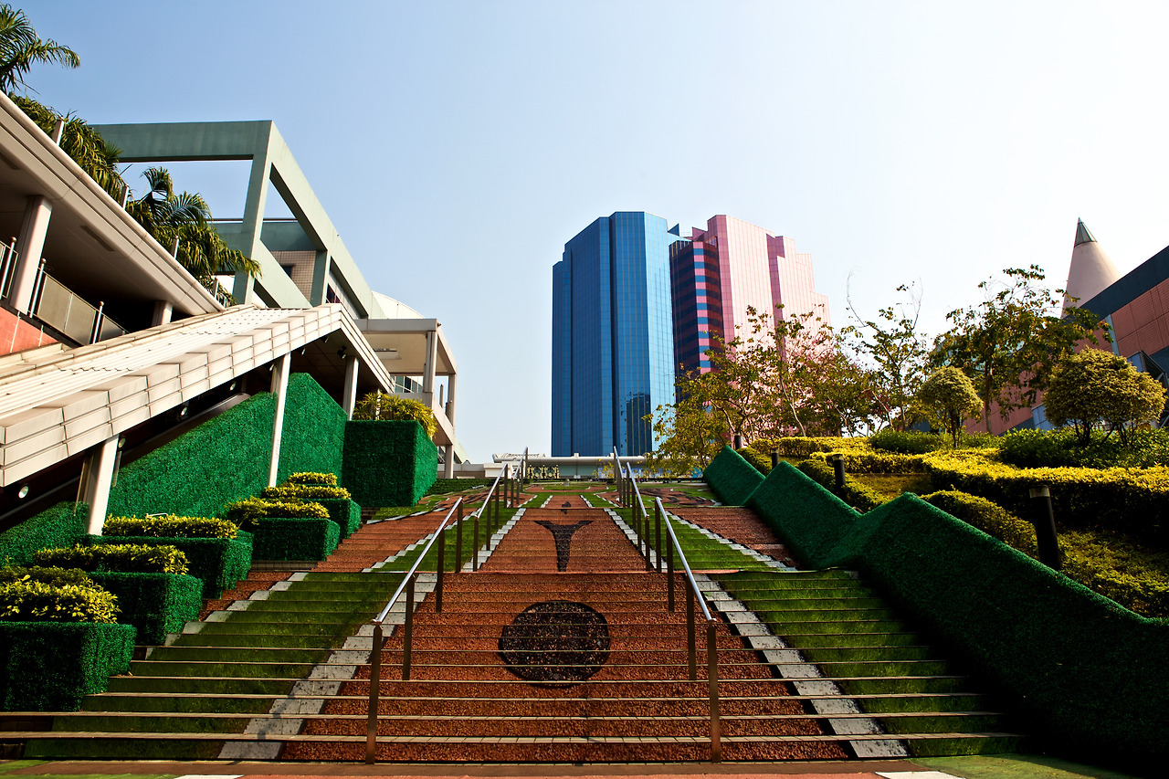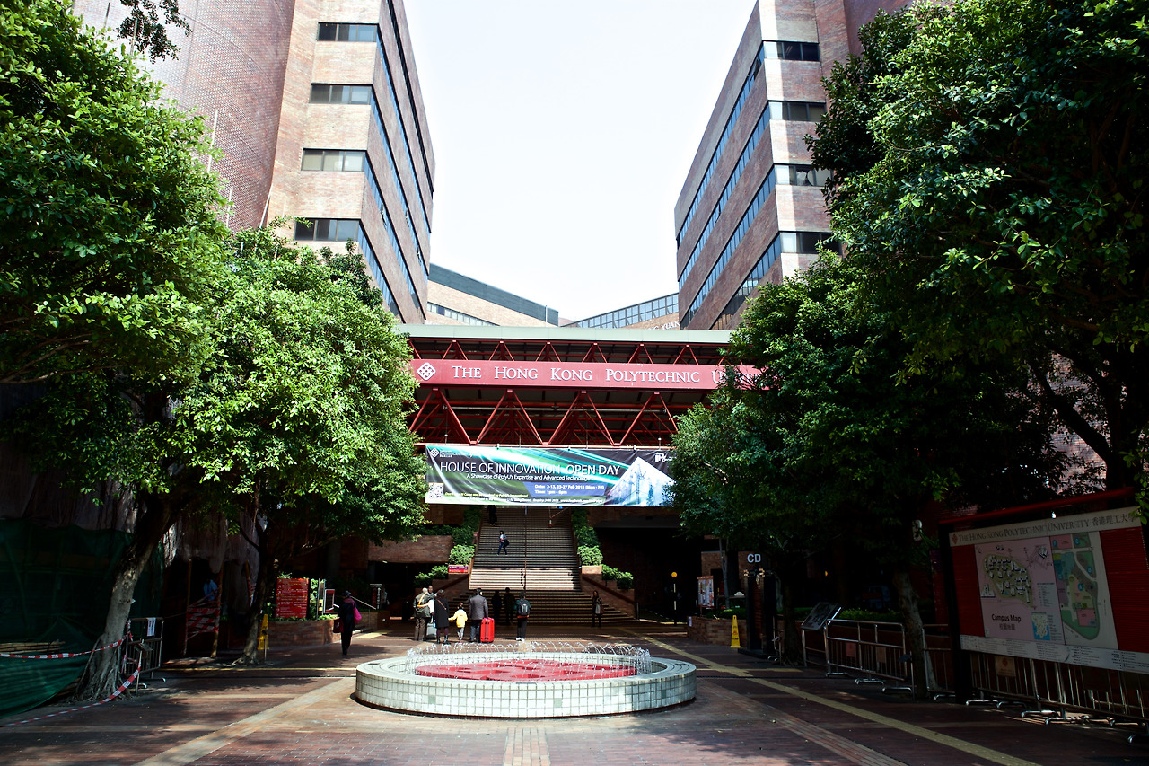 홍콩 폴리텍 대학은 규모 있는 대학인 것 같았다. 섬유, 패션 등 다양한 분야를 가르치고 있었고 엄청난 규모는 아니었지만 그렇다고 결코 작은 학교도 아니었다. 목욕탕 타일 같은 분수를 지나 계단을 오르니 학교는 밖에서 보는 것 보다 훨씬 컸다. 여기저기서 단체 후드티를 입은 학생들이 구호를 외치고 있었는데, 학교 축제인가 싶어 잠시 구경했다.