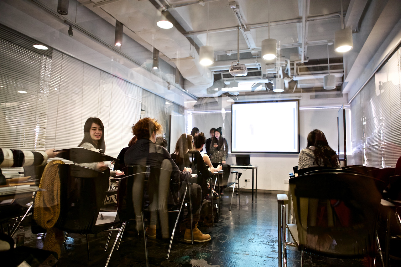 마네킹들이 무섭게 즐비했던 복도를 지나니 강의실과 회의실 그리고 소모임실 등이 있었다. 유리창으로 된 강의실에는 수업이 진행되고 있었는데 학생들이 서로의 작품을 평론하는 시간이었다. 학교 복도나 계단 등을 봤을 때 낡은 벽돌 건물같이 느껴졌지만 이렇게 강의실 앞으로 오니 뭔가 세련됐다는 느낌도 있었다. 특히, 벽돌의 답답함과 유리의 투명함이 공존하는 건물이 마치 어제 보았던 높은 현대식 건물들 사이에 자리 잡은 누리끼리하고 낡은 건물들의 아름다움 같았다.