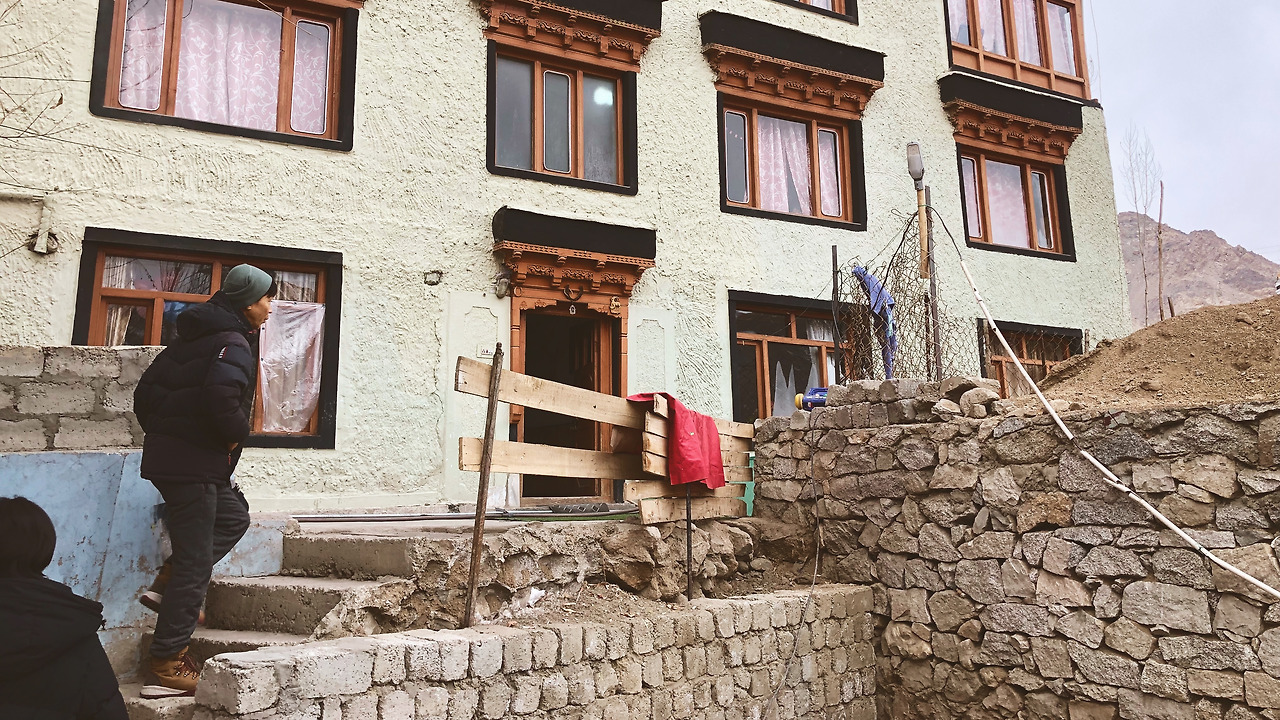 우리가 숙소에 도착했을 때 트레킹을 온 사람들이 보였다. 나중에 알게 된 사실이지만 우리 촬영팀이 방문한 시기(겨울)는 너무 추워서 성수기가 아니며 심지어 많은 라다크인들도 더 따듯한 지방으로 이동한다고 한다. 라다크의 겨울은 저녁엔 영하 30도 혹은 그 이하까지 떨어지는 경우도 있다고 했다.
