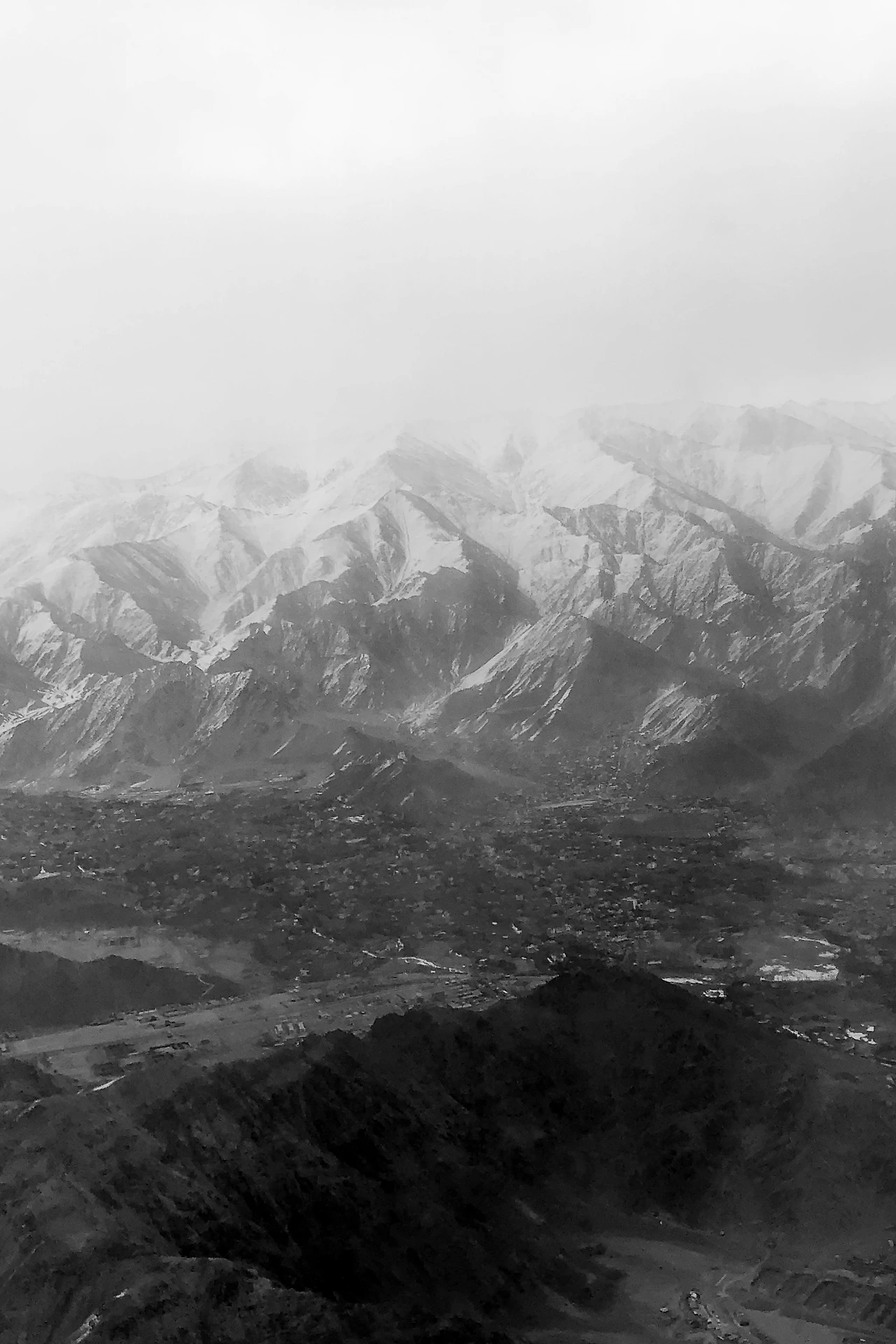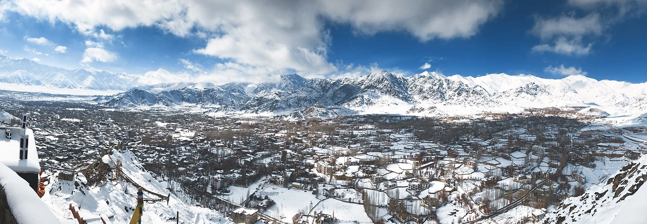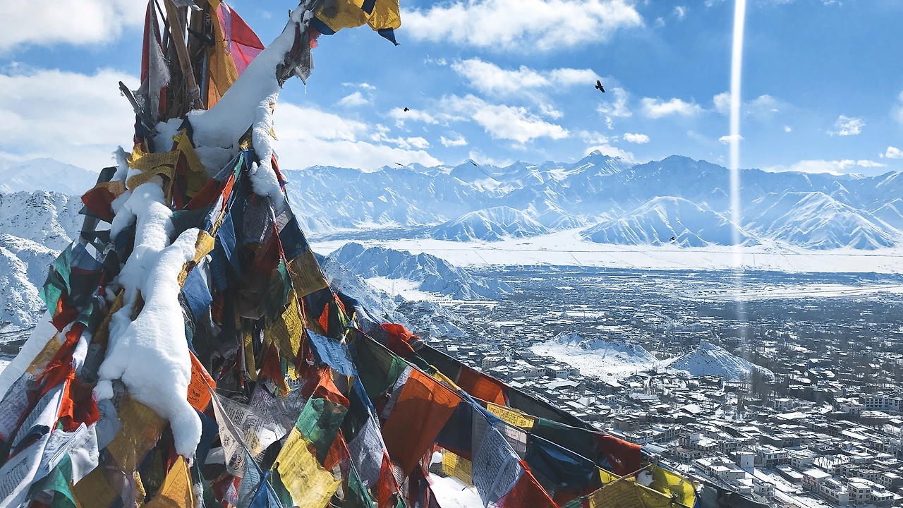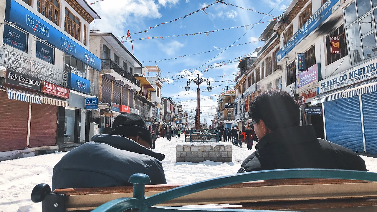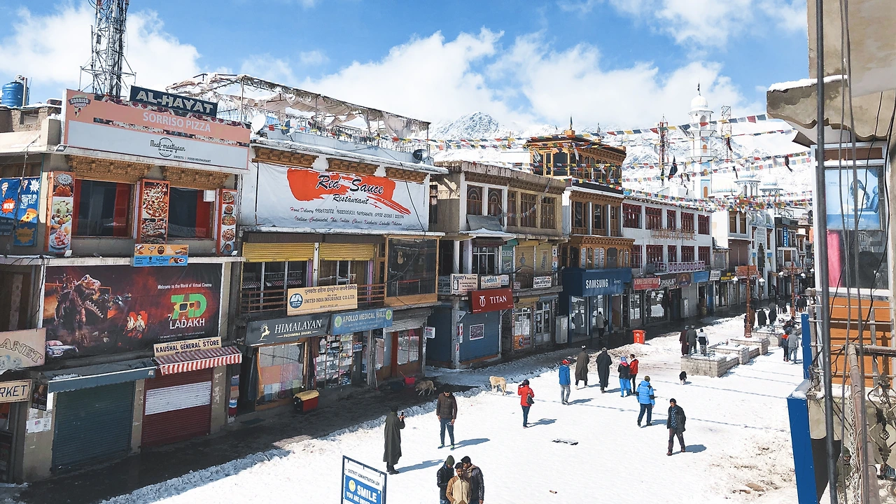 다시 도시 레(Leh)로 나왔더니 10년 만에 내린 폭설로 국내선 비행기가 모두 결항되었다.