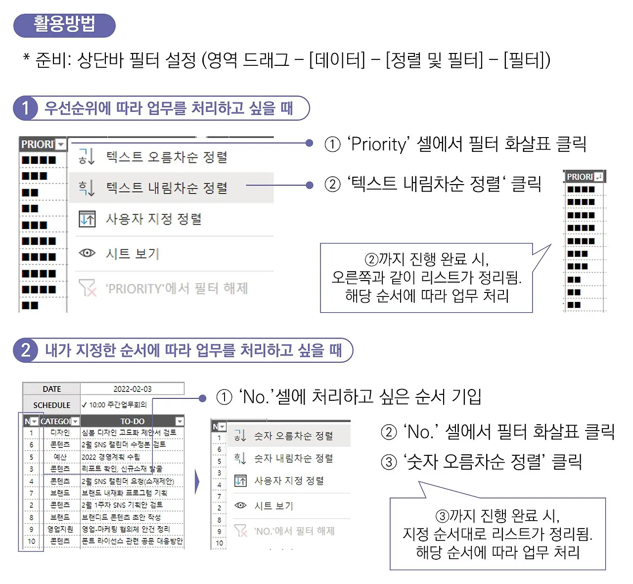 활용방안 2. 내가 지정한 순서대로 업무 정렬하여 순서대로 처리하기