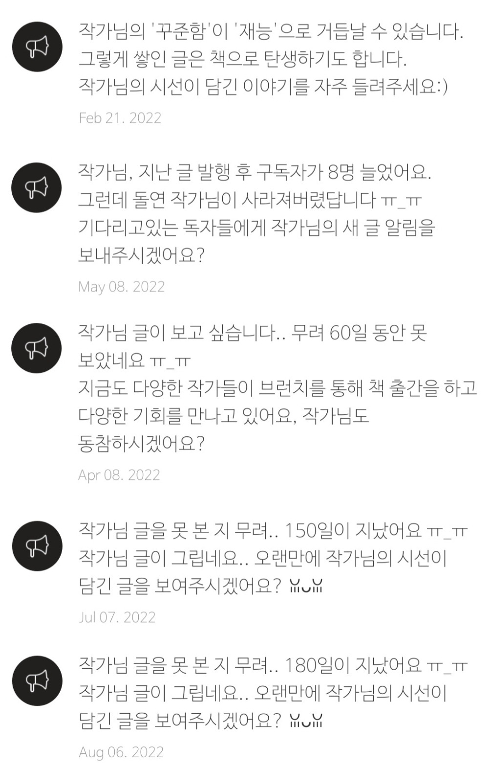 배은망덕하게 구는 저를 되돌리기 위해 브런치 앱에서는 꾸준히 알림을 보내주었습니다.