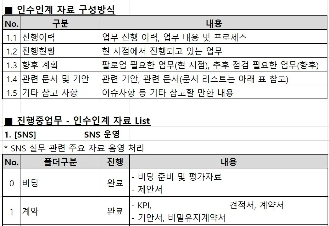 - 현재 진행 중인 업무 및 과거 진행했던 업무