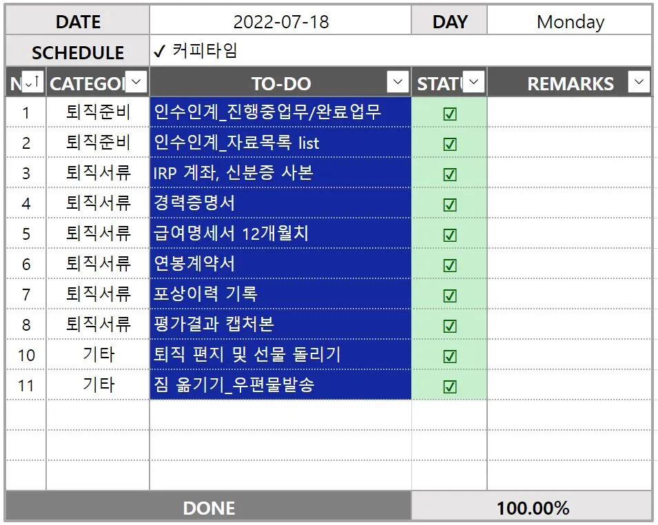 마지막 단계는 바로 짜릿한 퇴사입니다. 퇴사 선배님들의 조언에 따라 아래 사항들을 준비했습니다.