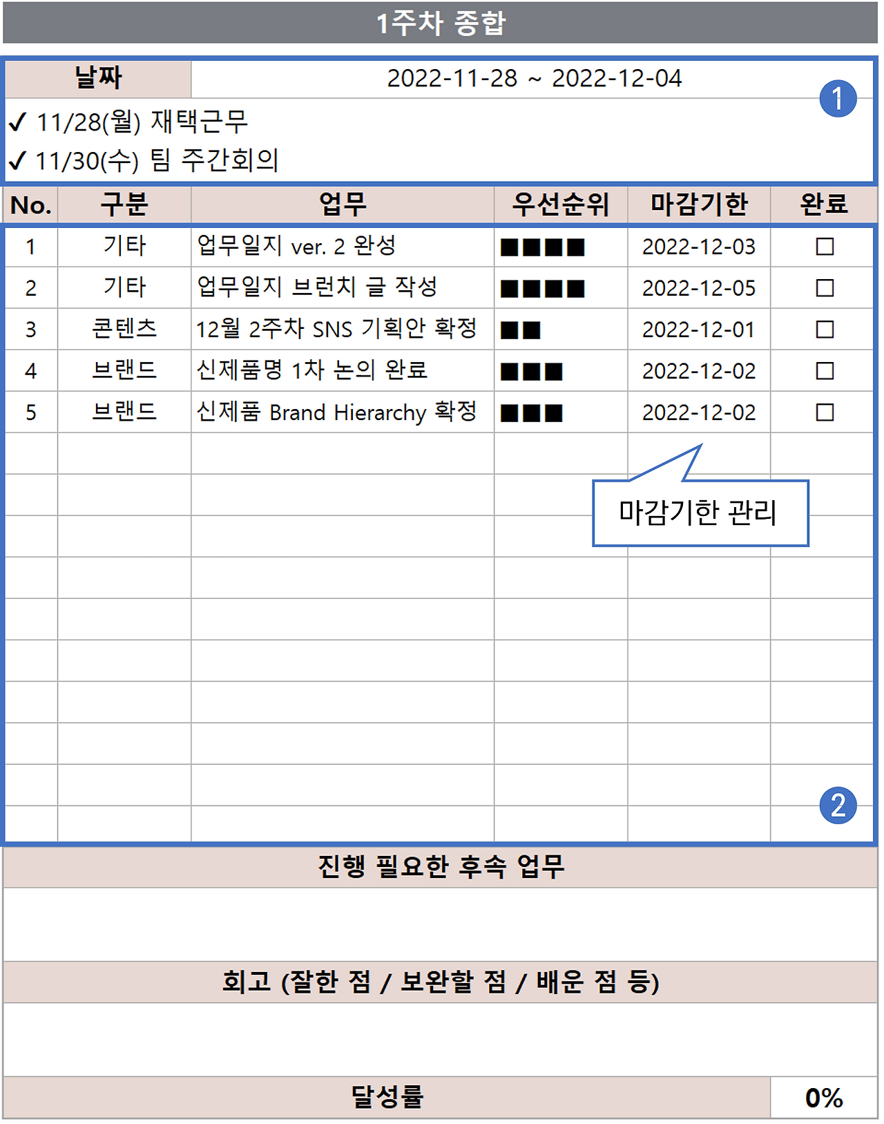 ② 이번주 해야 할 일 작성: 우선순위, 마감기한 포함하기