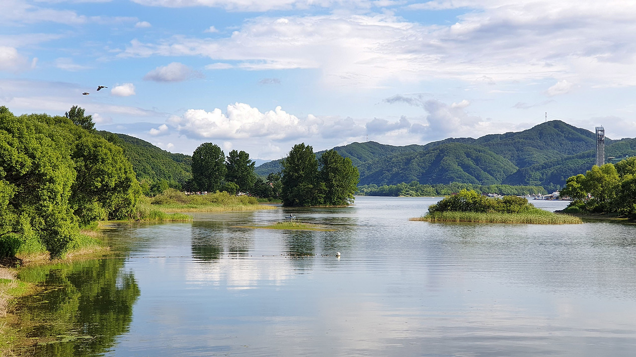 자라섬 남도 꽃다리에서 바라본 북한강