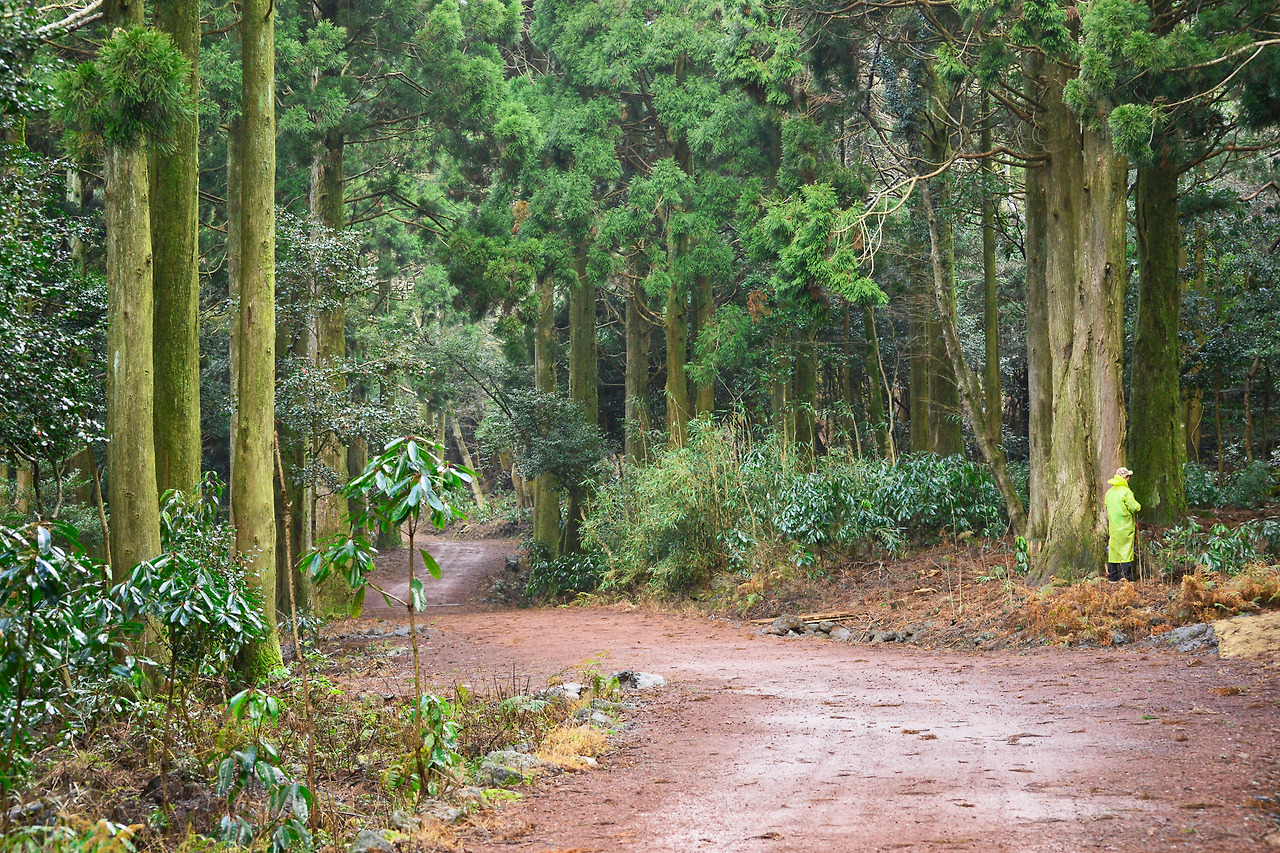 여행자가 방문했던 날은 비가 오락가락했던 날이다. 폭우가 아니라면 숲 탐방은 비가 와도 좋다. 숲의 싱그러움을 한껏 느낄 수 있고 운치가 있다. 숲길은 물기가 바로 스며드는 화산 송이나 야자나무껍질로 만든 매트가 깔려 있어 걷기에 편안하다.
