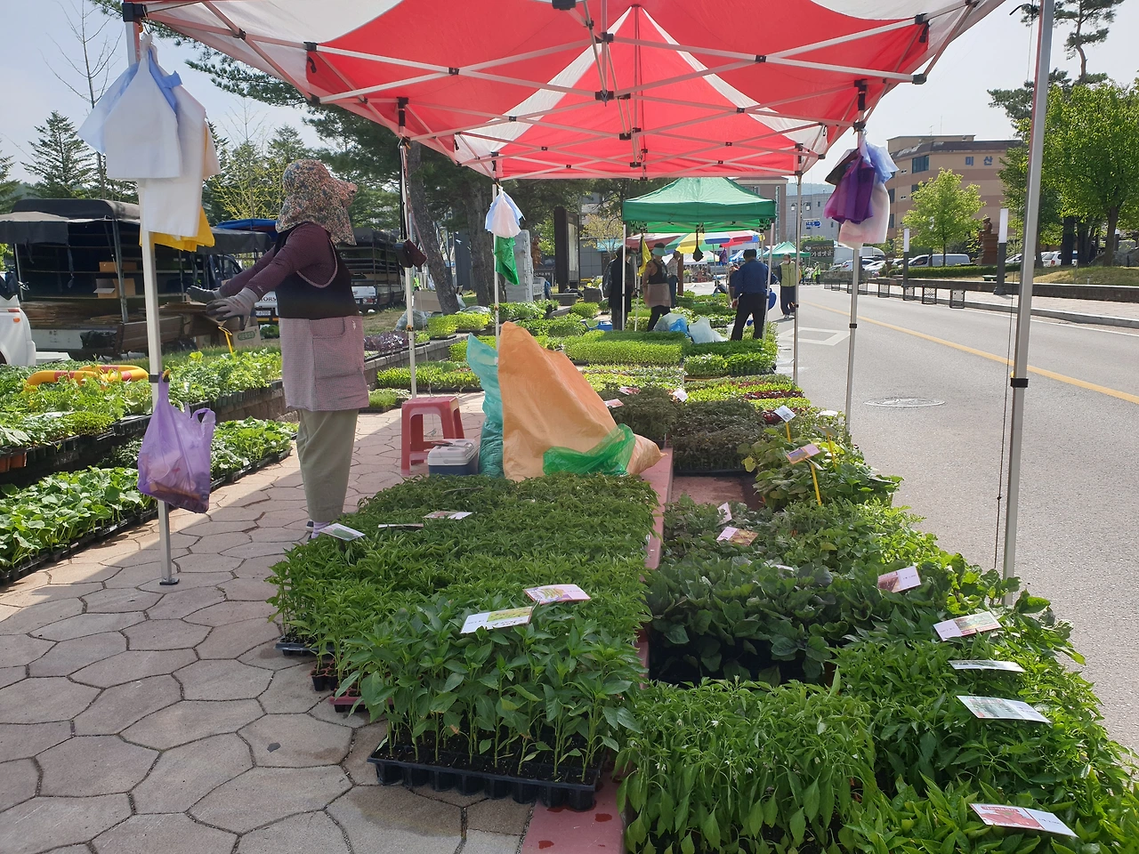 역시나 5월 중순이었건만 그 주 아침 기온이 영하로 떨어졌다. 일기예보보다 더 정확하게 때를 맞추어 농사를 짓는 농부들의 지혜로움이 놀라웠다. 그다음 주 내려가는 날이 마침 장날이다. 이른 새벽에 일산 집을 나서 바로 봉평장으로 향했다.
