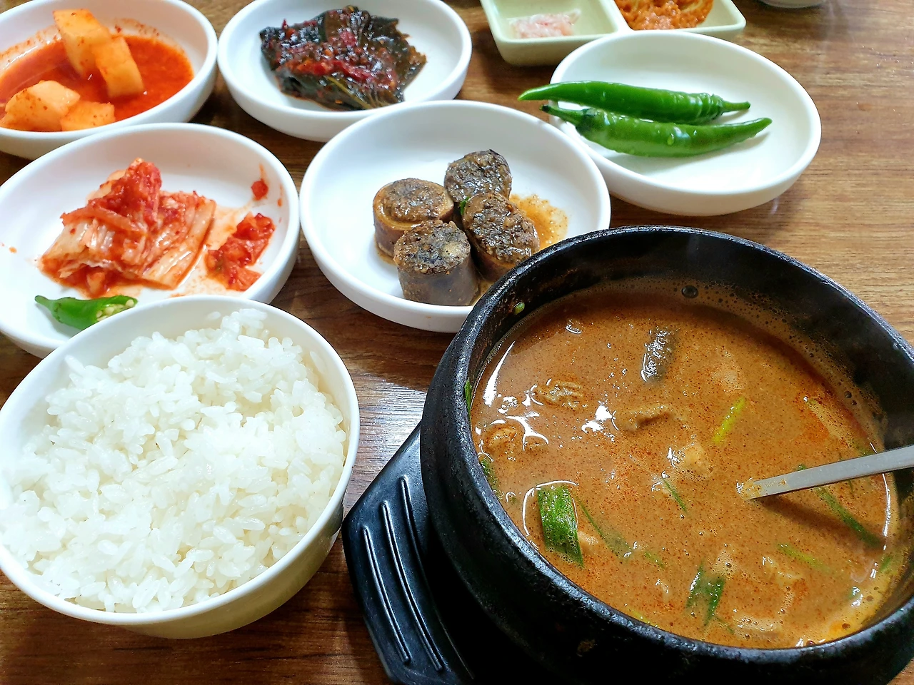 메뉴는 순대백반과 순대 한 접시가 전부다. 순대 한 접시는 종료되었고 순대백반만 가능하단다. 잠시 후 나온 순댓국이 예사롭지 않다. 국물은 잡내 하나 없이 구수하다. 순대 모양이 달라 여러 종류의 순대가 들어간 줄 알았다. 알고 보니 막창 부위에 따라 순대 모양이 달랐던 게다.