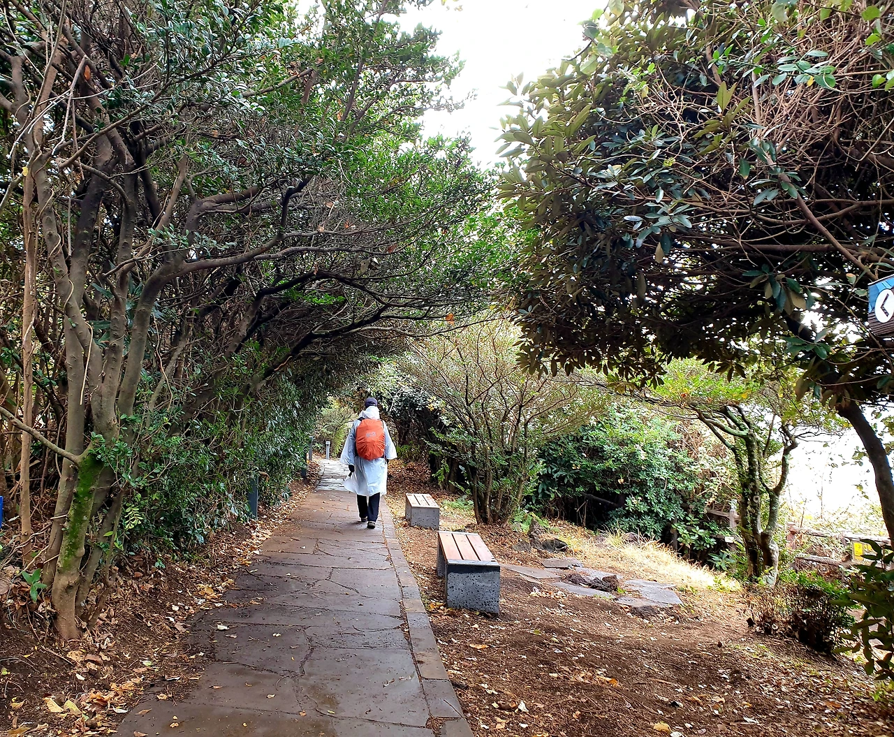 다음날 전날 걸었던 한라산 둘레길을 이어서 한번 더 걷고 싶었다. 하지만 눈 예보에 포기했다. 우리가 머무는 서귀포에는 비가 내렸다. 멀리 가지 않고 숙소에서 가까운 올레코스를 걷기로 했다. 전에 걸어보았던 코스 중 5코스를 선택했다. 동백나무 군락지가 있고 영화 건축학개론의 촬영지인 카페 서현의 집이 바닷가에 있어 느리게 걷으며 즐기기에 좋겠다 싶어서다.
