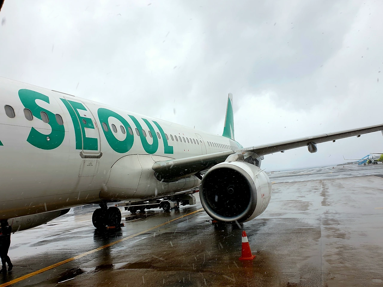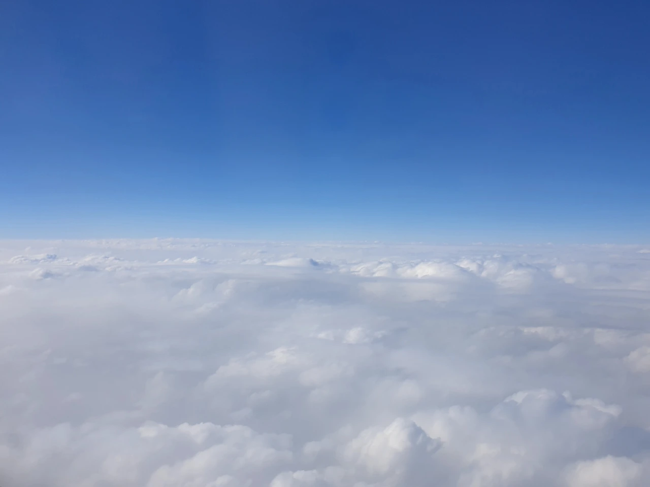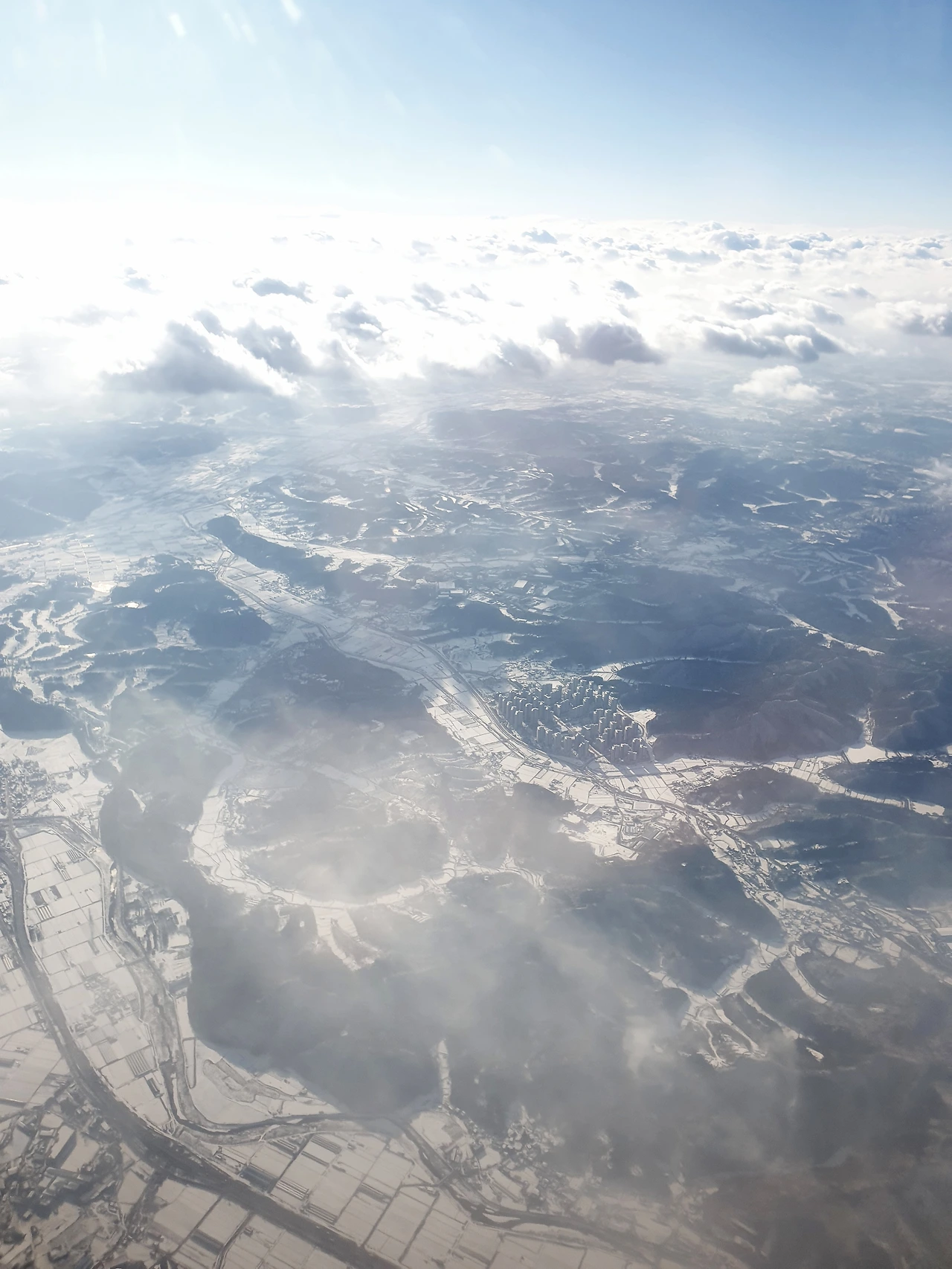 이륙하자마자 앞은 안갯속으로 아무것도 보이지 않는데 비행기에서는 이상한 굉음이 한동안 계속 났다. 기장의 안내 방송도 나오지 않아 가슴이 콩닥 거렸다. 그렇게 한동안 잔뜩 긴장시키더니 흰구름과 파란색 하늘빛이 조금씩 보이기 시작했다. 그제야 살았구나 싶어 안도의 숨을 내쉬었다.