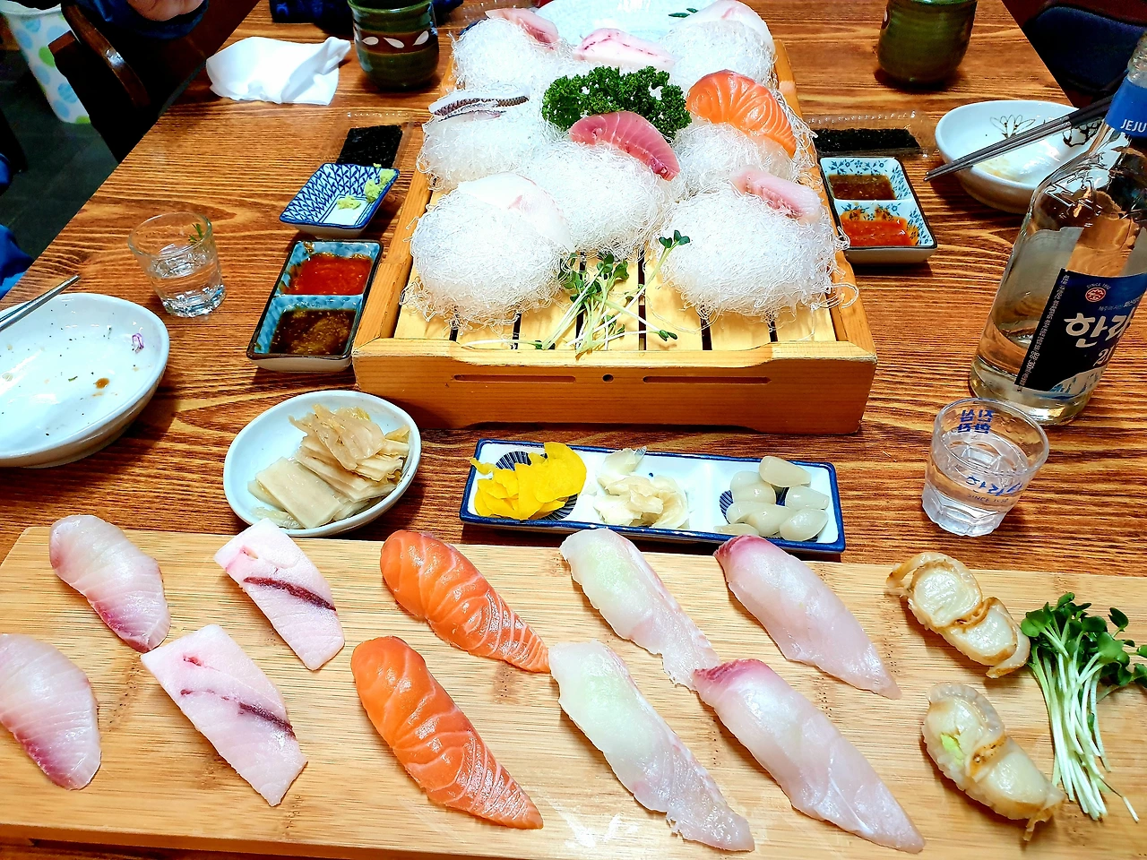 우린 인적 드문 청정 숲길에서 뽀드득뽀드득 하얀 눈 위에 발자국 남기며 한라산의 정기를 온몸으로 품고 돌아왔다. 저녁엔 등잔밑이 어둡다고 늘 이용하는 숙소 바로 앞에 있는 괜찮은 맛집도 처음 이용해 보고 여행의 기쁨을 더했다.