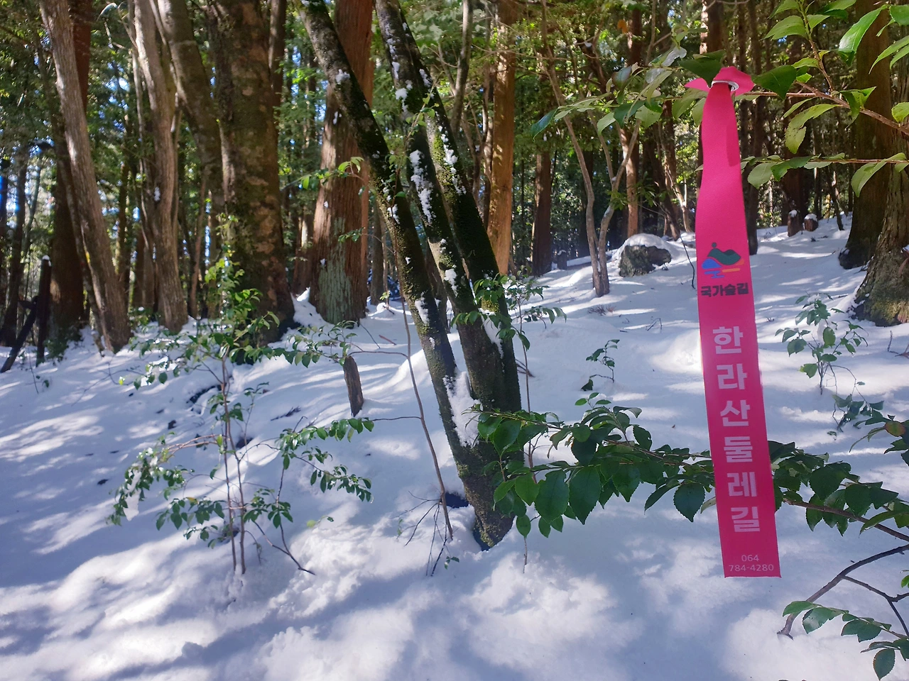 출발지와 도착지에 맞추어 한라산 둘레길 4구간 동백길을 다 걷지 못하면 어떤가. 우리는 충분히 눈 덮인 겨울 숲에서 기쁨으로 충만한 하루를 보냈다.