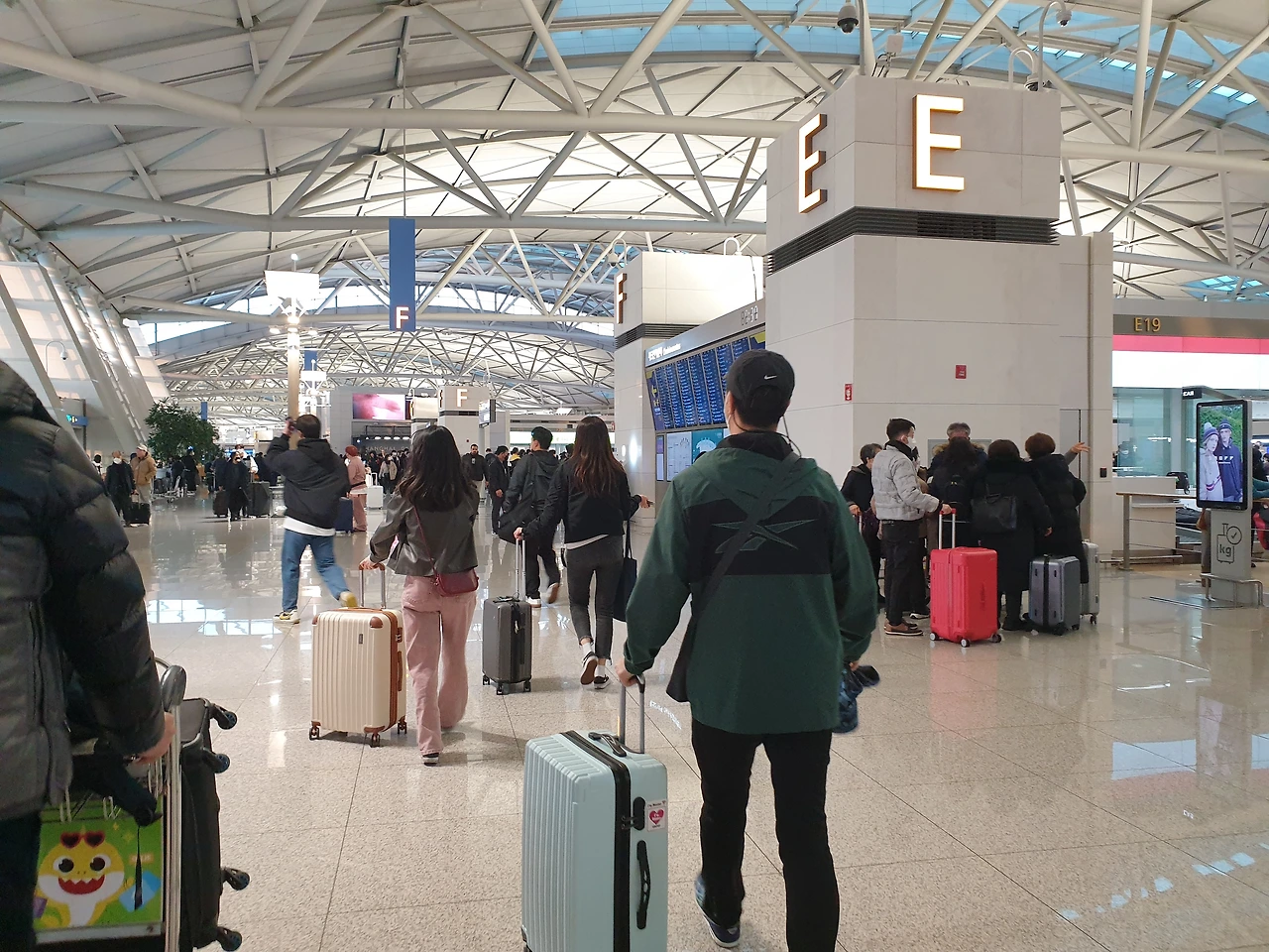 새벽에 일어나 빵과 커피로 간단하게 아침을 먹고 네 식구가 캐리어 하나씩을 끌고 집에서 나섰다. 예상은 했지만 월요일 아침부터 공항에 사람이 그렇게 많을 줄이야. 탑승 3시간 전에 도착했기에 그나마 안심이 되었다. 꼬불꼬불 이어진 긴 꼬리줄의 기다림 끝에 셀프체크인을 마쳤다. 모든 게 스마트하고 빠른 시스템은 그 많은 사람을 거뜬하게 통과시켰다. 역시 인천공항이 최고다를 외치지 않을 수 없다.