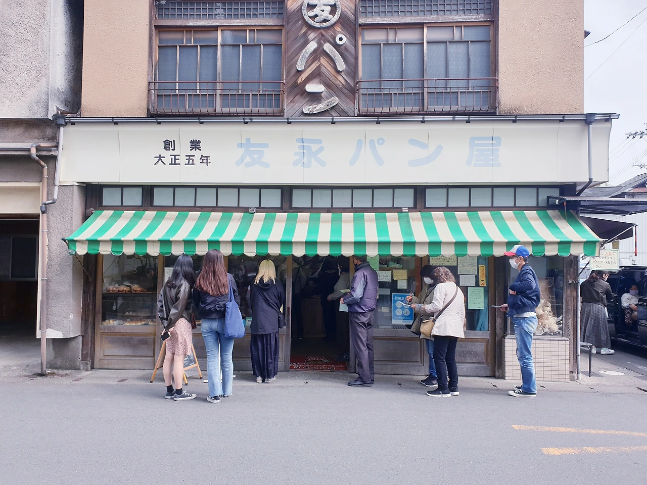토모나가 팡야라는 빵가게는 한눈에 봐도 오랜 세월을 품고 있음이 느껴졌다. 시골 슈퍼 같은 작은 규모의 빵집은 가격도 착하더라. 밖에서 줄 서 있으면 한 사람이 나와서 주문을 받고 순서대로 들어가 계산하고 주문한 빵을 들고 나온다. 일행이 여러 사람이 가면 한 사람만 가게 안으로 들어갈 수 있다. 그만큼 규모가 작은 가게지만 찾는 발길은 많다는 얘기다. 점심을 든든하게 먹은 직후라서 100년 전통의 빵맛은 저녁 숙소에서 맛보기로 하고 서둘러 짐을 찾아 텐진으로 향하는 버스에 올랐다.