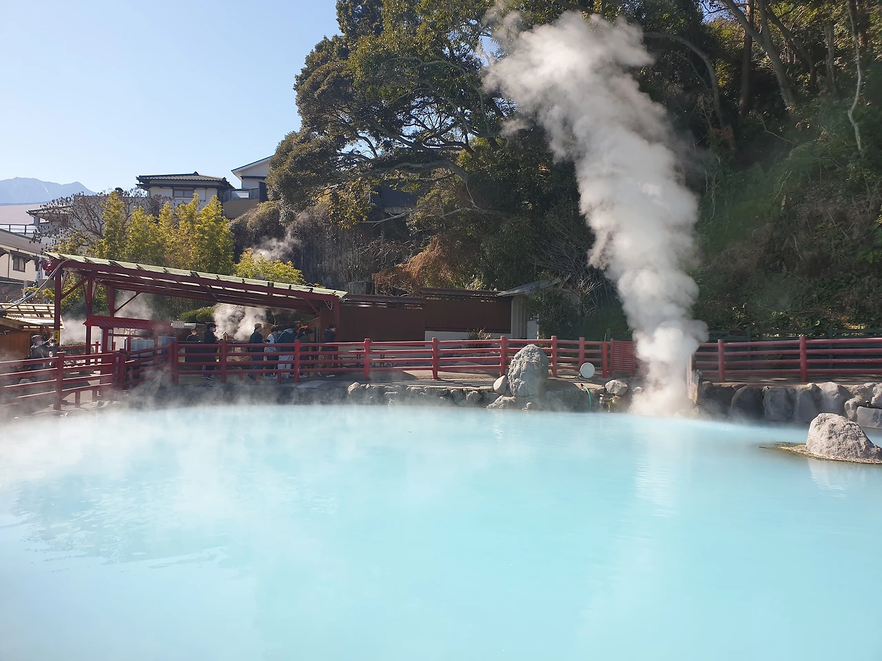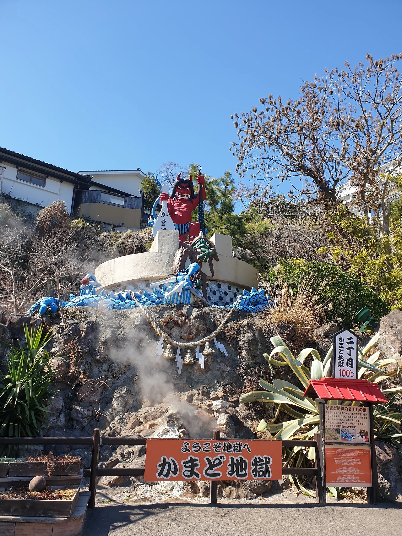저녁 식사(카이세키 요리) 예약을 6시로 해놓았으니 그 시간까지 속소로 돌아오면 된다. 시간적인 여유가 있다. 일본에서 첫 번째로 꼽히는 온천 도시에 왔으니 벳푸 8탕 중 하나인 칸나와 온천마을에서 지옥순례를 해볼 만하다. 숙소 근처에서 시내버스를 타고 25분쯤 창밖 구경을 하다 보니 칸나와에 도착했다. 마을 곳곳에서 하얀 증기가 모락모락 피어오르는 모습을 흔히 볼 수 있다. 지코쿠(지옥) 순례는 7개의 독특한 형태와 색채로 이루어진 간헐천이 테마처럼 꾸며진 관람용 온천을 돌아보는 것이다. 온천수로 악어를 키우는 곳도 있고 열대 식물을 키우는 곳도 있다. 100도에 가까운 뜨거운 증기의 분출로 주민들이 가까이 접근할 수 없어 지코쿠(지옥)라 불렸다. 5곳은 도보로 이동이 가능한 거리에 모여 있고 2곳은 투어버스를 이용해 둘러본다. 보통 단제 여행으로 투어버스를 타고 온 사람들은 다 돌아보지만 개별적으로 온 사람들은 우리처럼 한 두 곳을 둘러본다.