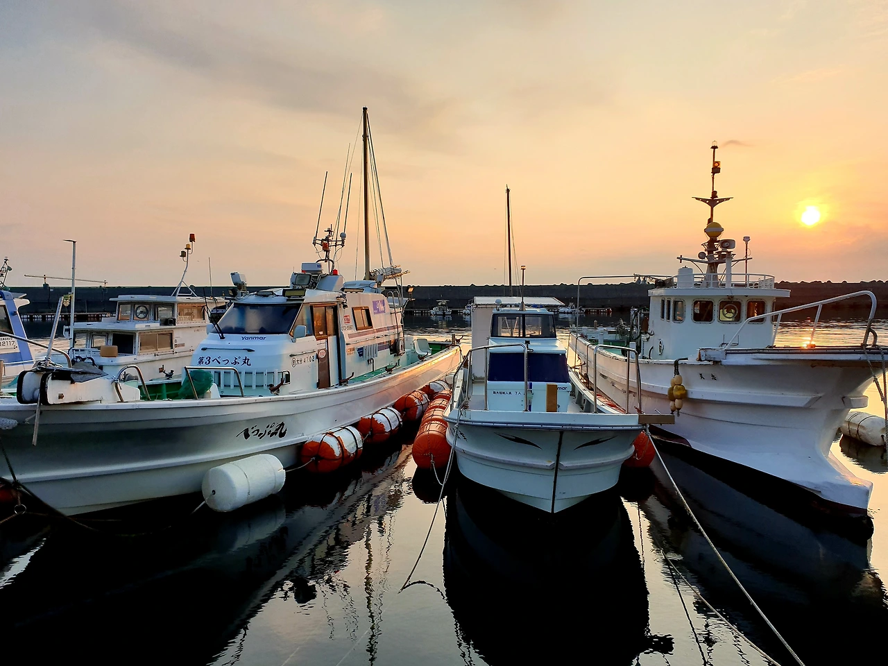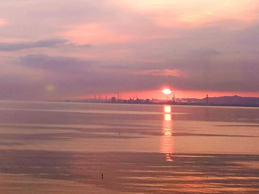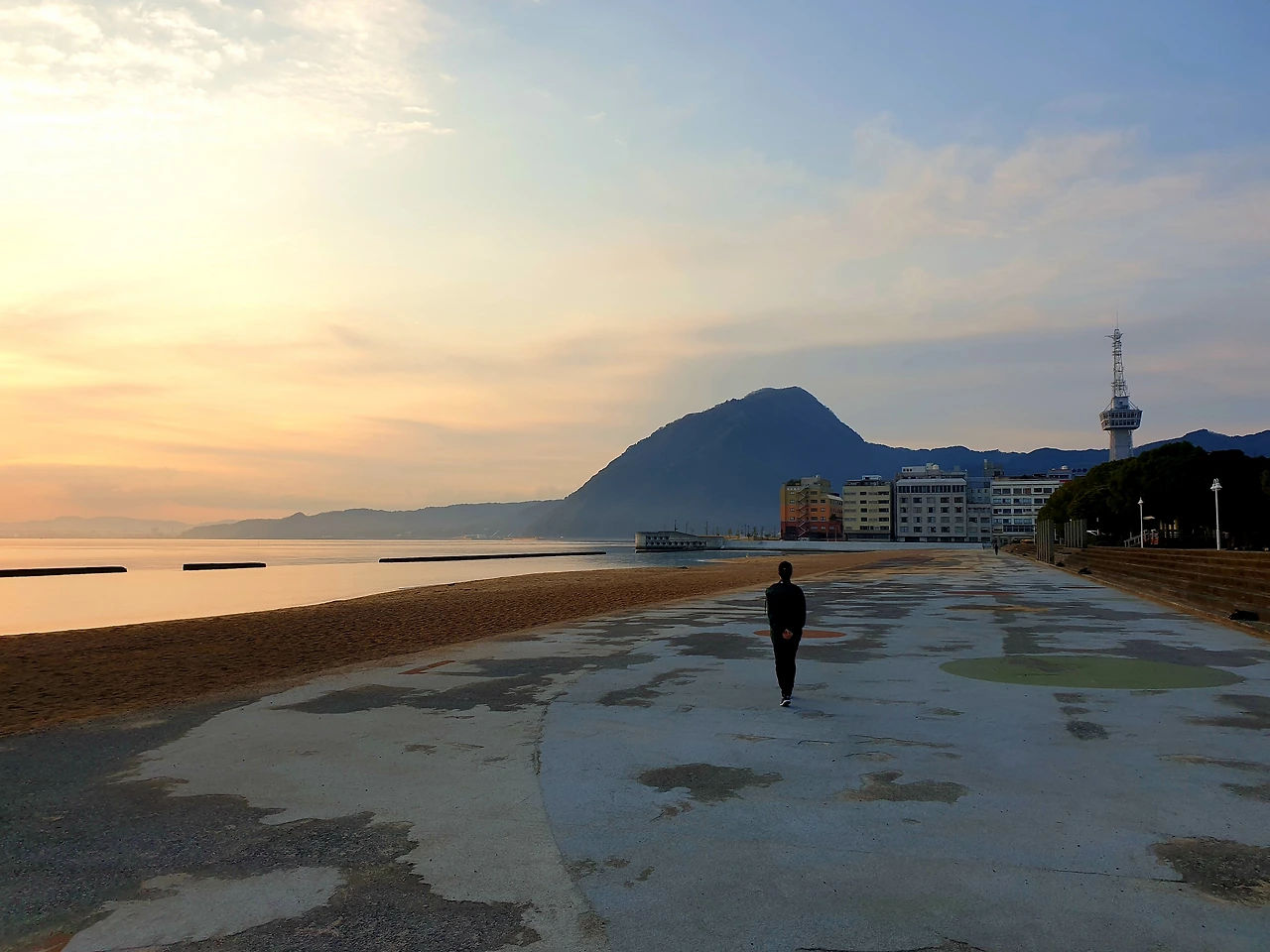 숙소에서 바라본 일출과 산책길에 만난 벳푸항