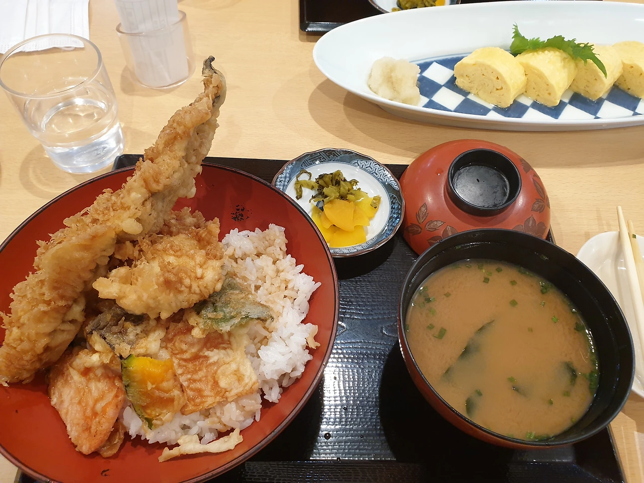 벳푸에 도착하니 점심시간이다. 이번 여행에서 벳푸에 간 가장 큰 목적은 일본 전통 숙박 시설인 료칸 체험이다. 료칸에 머물며 온천욕과 카이세키 요리(일본 코스 요리)도 즐겨보고 싶었다. 예약한 료칸에 도착해 짐을 맡기고 저녁 시간과 가족탕을 예약한 후 가볍게 거리로 나섰다. 호텔 주변에 마침 눈에 띄는 텐동 전문 식당이 있어 그곳에서 점심을 먹었다. 우연이 들어간 곳인데 이 식당이 자랑하는 계란말이와 밥 위에 올려진 겉은 바삭하고 속은 부드러운 생선 장어 등의 튀김 맛이 일품이다.