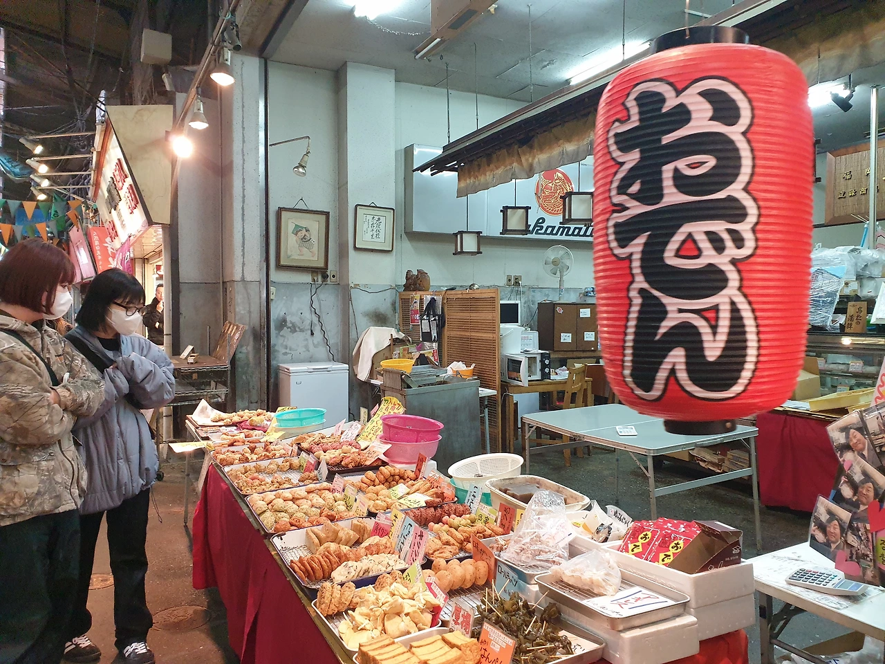 아이들이 찾아간 식당은 마침 내가 가보고 싶었던 야나기바시 시장 내에 있었다. 가려고 했던 식당은 웨이팅 시간이 길어 건너편에 있는 다른 식당으로 갔다. 생선가게에서 운영하는 식당이라 싱싱한 횟감을 사용하고 가격도 저렴하다. 카이센동을 맛있게 먹고 포장 판매하는 해삼과 장어 튀김도 저녁 맥주 안주로 구매했다. 오뎅 판매하는 곳에서 다양한 맛의 어묵도 사서 숙소 냉장고에 넣어놓고 잠시 쉬었다가 다시 나섰다.