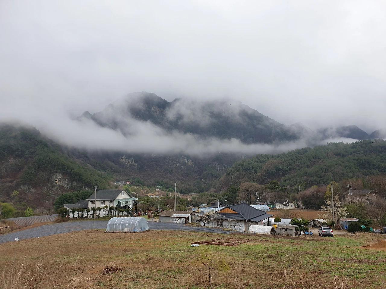 비닐하우스 일을 마무리하고 난 다음날에도 또 비가 내린다. 보슬보슬 내리는 비, 앞산은 멋진 운해로 그림 같은 풍경이 펼쳐진다. 마치 낯선 여행지에 선 듯 연신 감탄을 쏟아내게 한다. 비로 인해 일을 멈추고 나니 그제야 촉촉해진 동네 산책도 하고 틀밭에 심은 작물들 살필 여유도 생겼다. 아침 기온은 여전히 추워서인지 상추는 더디 자라고 지난달 씨를 뿌린 적겨자는 소식이 없다 했는데 자세히 살피니 잡초 사이로 빼꼼히 고개 내밀고 있다.