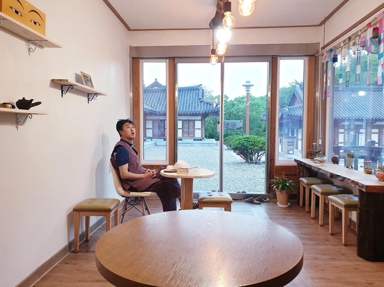 수련복으로 갈아입으니 우선 복장부터 편안해진다. 오리엔테이션은 절에서 스님을 만났을 때나 공양할 때 지켜야 할 예절 안내로 간단하게 끝이 났다. 다실에 마련된 차는 언제든 자유롭게 마실 수 있고 우리가 머무는 방 바로 옆에는 자그마한 북카페도 있었다. 너른 통창 앞에 원목으로 만든 긴 책상이 맞춤처럼 놓여 있다. 새벽에 그곳에 앉아 책을 읽으니 서늘한 공기가 스미고 청아한 새소리가 정신을 맑게 일깨운다. 차 한잔을 마시며 책을 읽을 수 있다면 금상첨화였겠다. 북카페에서는 차를 마시지 말라고 안내돼 있어 아쉬웠다. 집에서 차를 옆에 두고 마시며 책 읽는 습관이 들어서인지 그 새벽과 저녁 분위기에서는 더 간절했다. S는 여전히 잠들어 있고 아무도 보는 이 없다지만 지킬 건 지켜 주어야겠다는 생각에 차 한잔의 유혹을 꾹꾹 눌렀다.