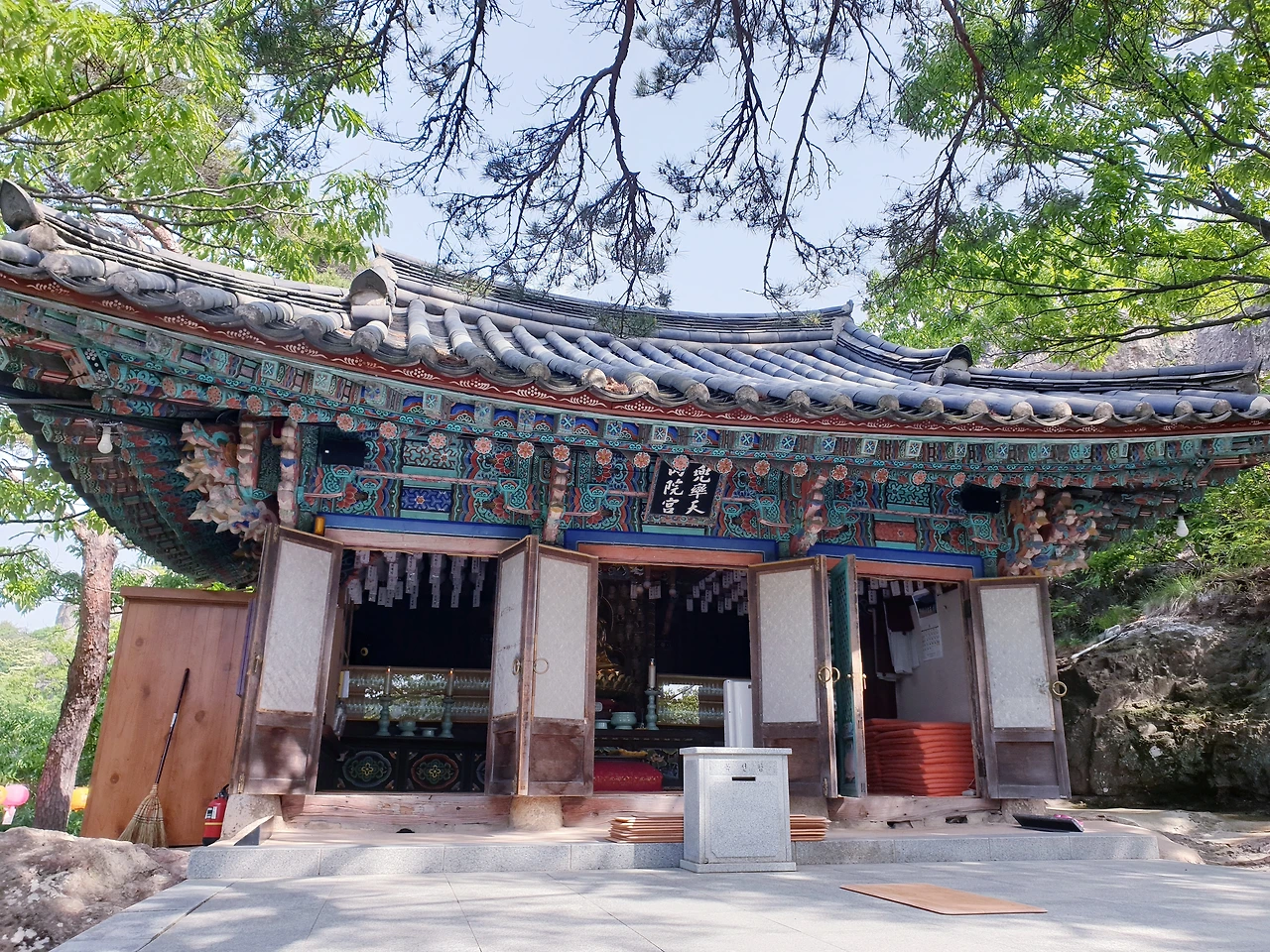 내원궁과 마애불이 있는 곳에서 아래로 조금만 더 내려가면 도솔암이다. 부처님 오신 날을 앞두고 행사 준비에 분주한 모습이다. 숙소에서 도솔암 가는 길 반대쪽으로 도솔폭포도 있다. 들러볼까 하다가 땀을 흘려 샤워도 하고 잠깐 쉬었다 퇴실하고 싶어서 그냥 지나쳤다. 1박 2일이 아쉽기만 하다. 다음날 일만 없었다면 하룻밤 더 머물고 싶은 생각이 간절하다. 이번 고창 여행에서 선운사 템플스테이는 기대 이상이었다. 적어도 2~3일 정도의 시간을 내어 다시 찾고 싶을 만큼 여운이 남았다.