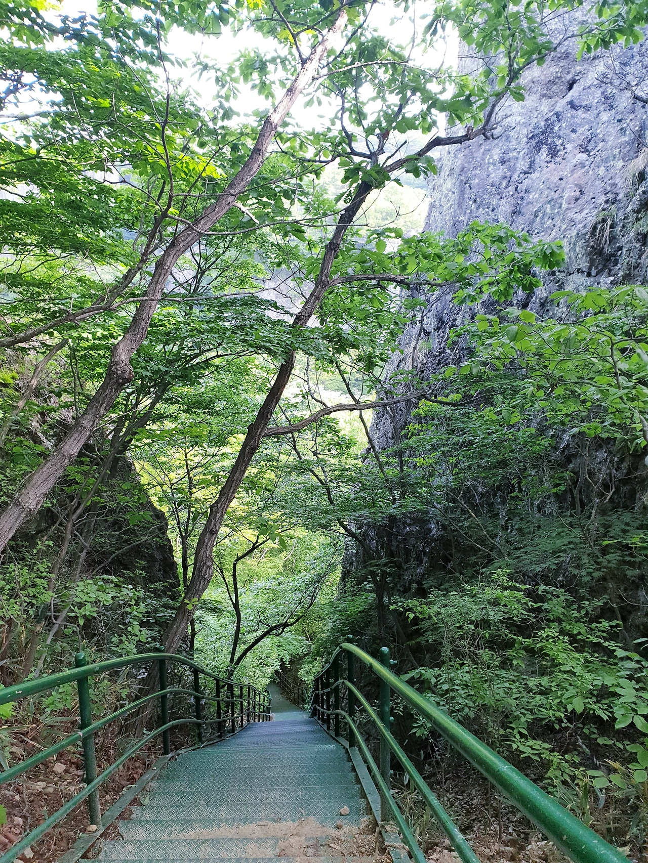우리는 코앞에 도솔암을 두고 갈림길에서 먼저 천왕봉으로 향했다. 가파른 오르막이 시작됐다. 계단을 따라 오르는데 급경사로 아찔하다. 천길 낭떠러지였을 곳에 계단을 설치해 놓았다. 숨이 꼴딱꼴딱 넘어갈 것처럼 힘이 들면 이 험난한 지형에 계단을 설치했을 누군가의 수고를 생각하며 한 계단 한 계단 올랐다.