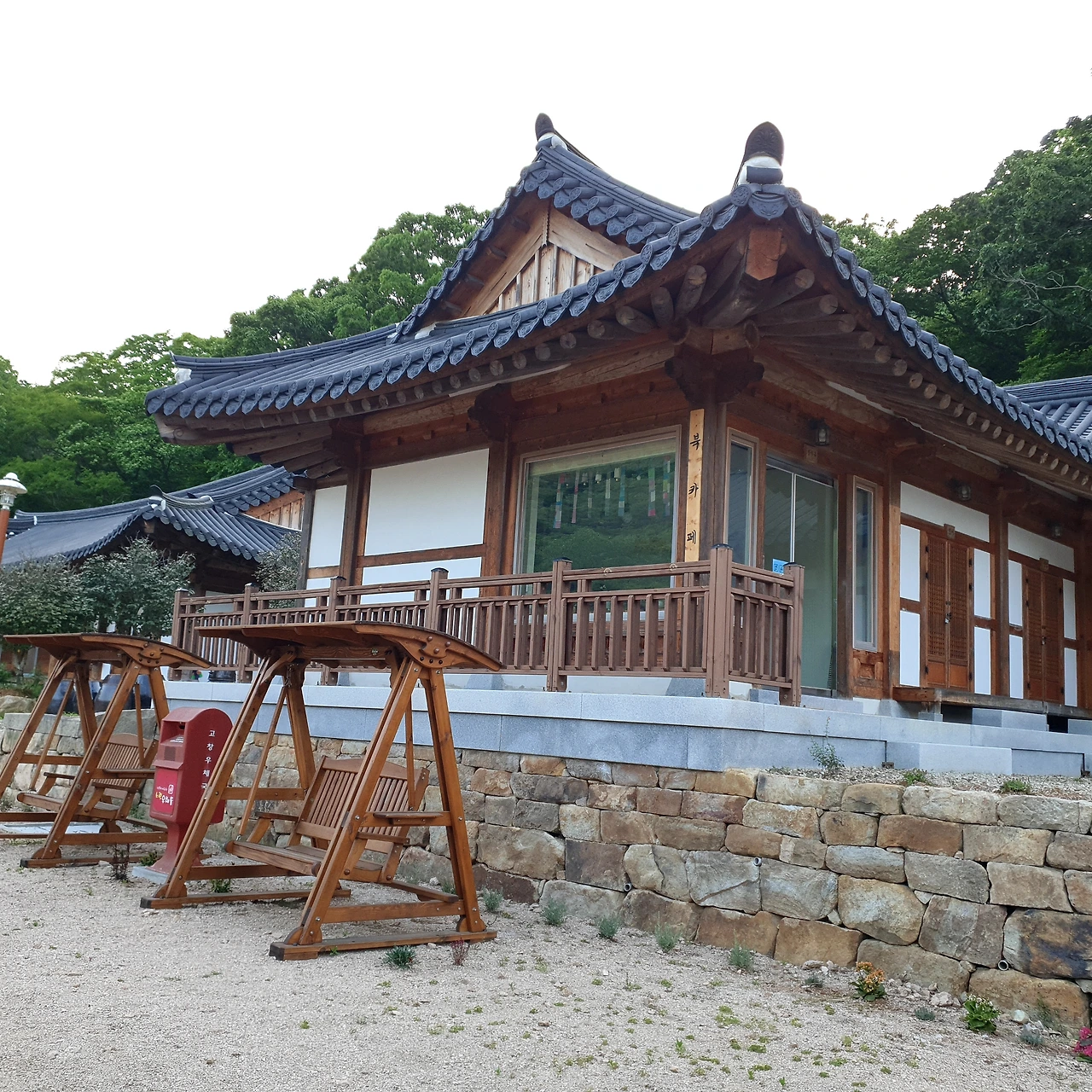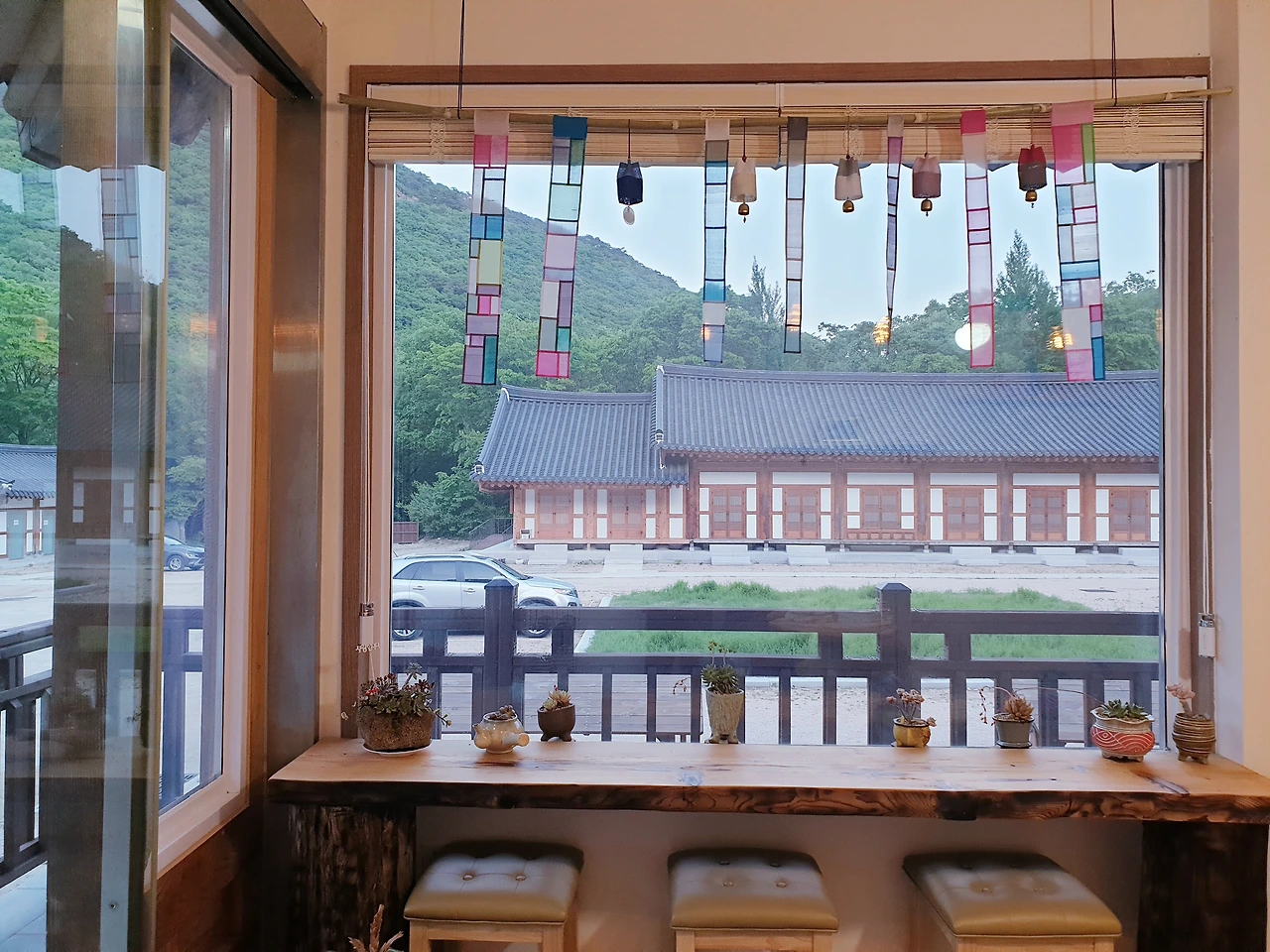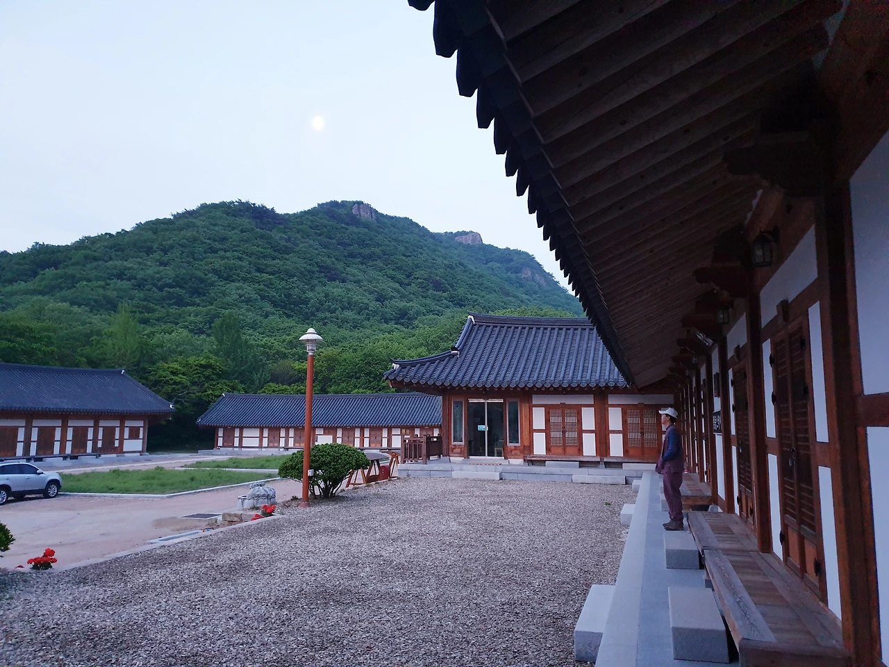 주말에 40명이 다녀갔다고 한다. 주말 예약은 이미 5개월 후까지 다 찼다고 한다. 평일 또한 몇 팀씩은 있는데 드문 일이 일어났다. 연휴가 막 끝난 시점이라 그런지 그날 템플스테이 하는 사람이 우리 부부 달랑 두 사람뿐이다. 그 넓고 고요한 공간을 우리 둘만 호젓하게 누리게 되었다. 사방이 산으로 둘러있고 옆으로 도솔천이 흐른다. 마당 넓은 대갓집 한옥의 주인이 되어보는 호사라니! 자유의 날개가 소리 없이 펼쳐지는 느낌이다.