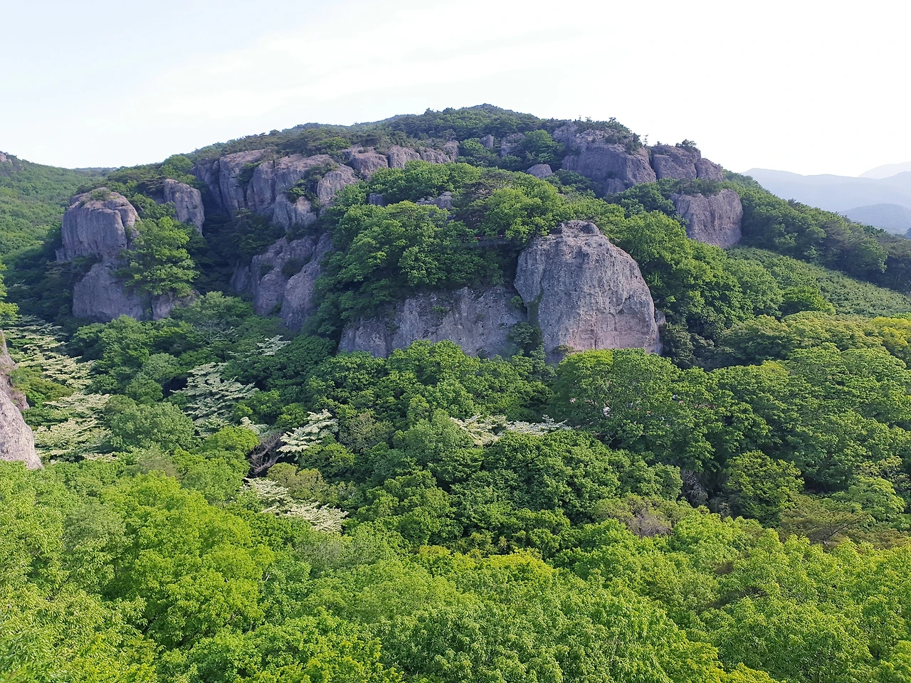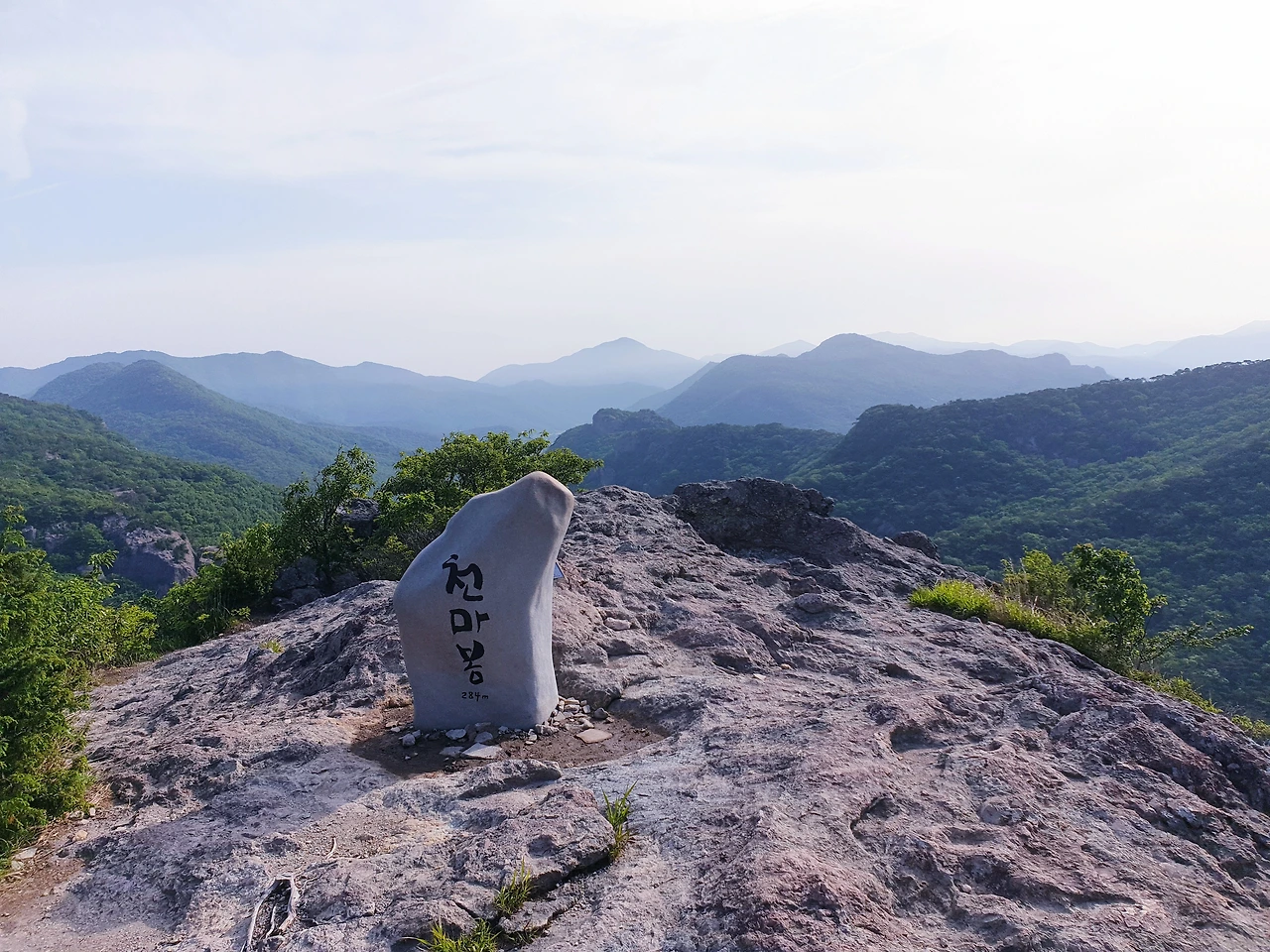 천마봉에 이르기 전 평평한 바위에 서니 탁 트인 조망이 시원하게 펼쳐진다. 건너편 커다란 바위에 새겨진 마애불상도 눈에 들어온다. 산새를 굽어보며 잠시 땀을 식히고 다시 오르기 시작했다. 천마봉에 오르니 도솔암이며 마애블 등이 한눈에 내려다보인다.