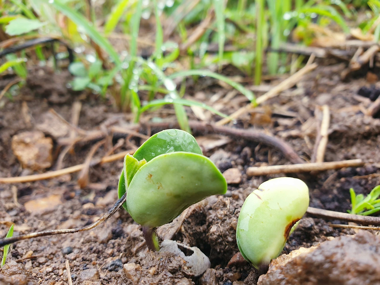 풀더미 속에 구멍 하나씩을 내어 콩씨앗 세 알씩을 넣고 살짝 덥어두었는데 소식이 없었다. 자세히 들여다보니 빼꼼 고개를 들고 있다. 나는 이 의미 있는 세알 심기가 참으로 마음에 들고 좋다. 한 알은 하늘을 나는 새, 또 다른 하나는 땅에 사는 동물, 그리고 나머지 한 알은 인간의 먹거리를 위함이다. 이 얼마나 겸손하고 자연과 공생하려는 선하고 넉넉한 마음인가. 어떤 씨앗을 땅에 심던 세 알 심기는 그래서 참으로 흐뭇하다. 도시 대형 마트에서 반듯하게 생긴 농산물을 사 먹을 때는 알 수 없었던 이야기다.