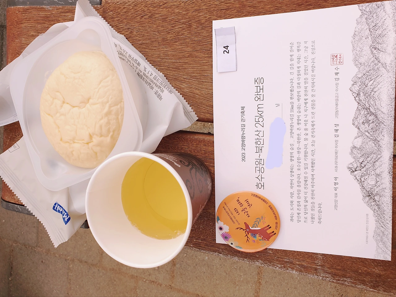 20km를 지나서는 거의 무아지경이다. 한동안 지칠 줄 모르고 수다를 떨며 걷던 사람들도 조용해졌다. 그저 앞사람 따라 터벅터벅 걸음을 옮기는 발소리뿐이다. 해질 무렵 북한산보다 북한산이 더 잘 보이는 지축 8단지 창릉천변 소공원에 도착했다. 무사히 25km 완주다. 완보증과 따듯한 차 한잔, 달달한 크림이 들어간 큼직한 빵 하나에 다시금 생기를 찾았다.