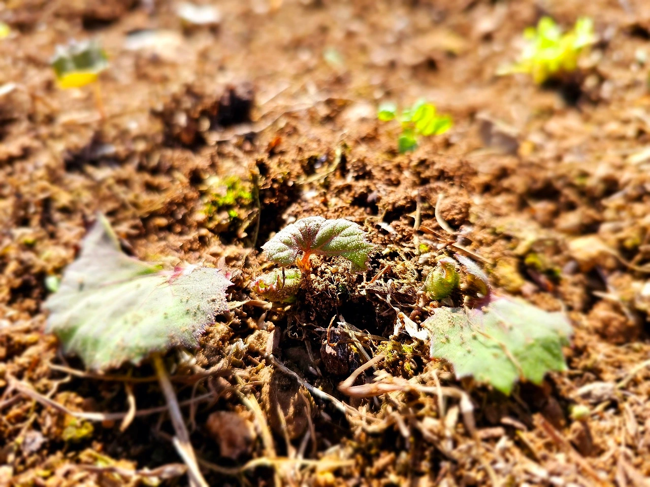 작년 봄 이웃에서 준 머위를 우리 집 맛있는 정원 놀이터로 옮겨 심었다. 시름시름 말라갔다. 그리고 겨울을 지나 봄이 되어도 아무 소식이 없어 영 떠나버렸나 했다. 그 자리에 다른 나물을 심어볼까 하고 흙 고르기를 하는데 다른 잡풀들과 공생하며 조금씩 지상으로 올라오고 있는 게 아닌가. 얼마나 반갑던지 괭이를 던지고 호미로 조심스럽게 잡풀을 제거해 주었다. 여기저기 아주 작은 얼굴을 하고 조용히 숨 고르기를 하고 있다.
