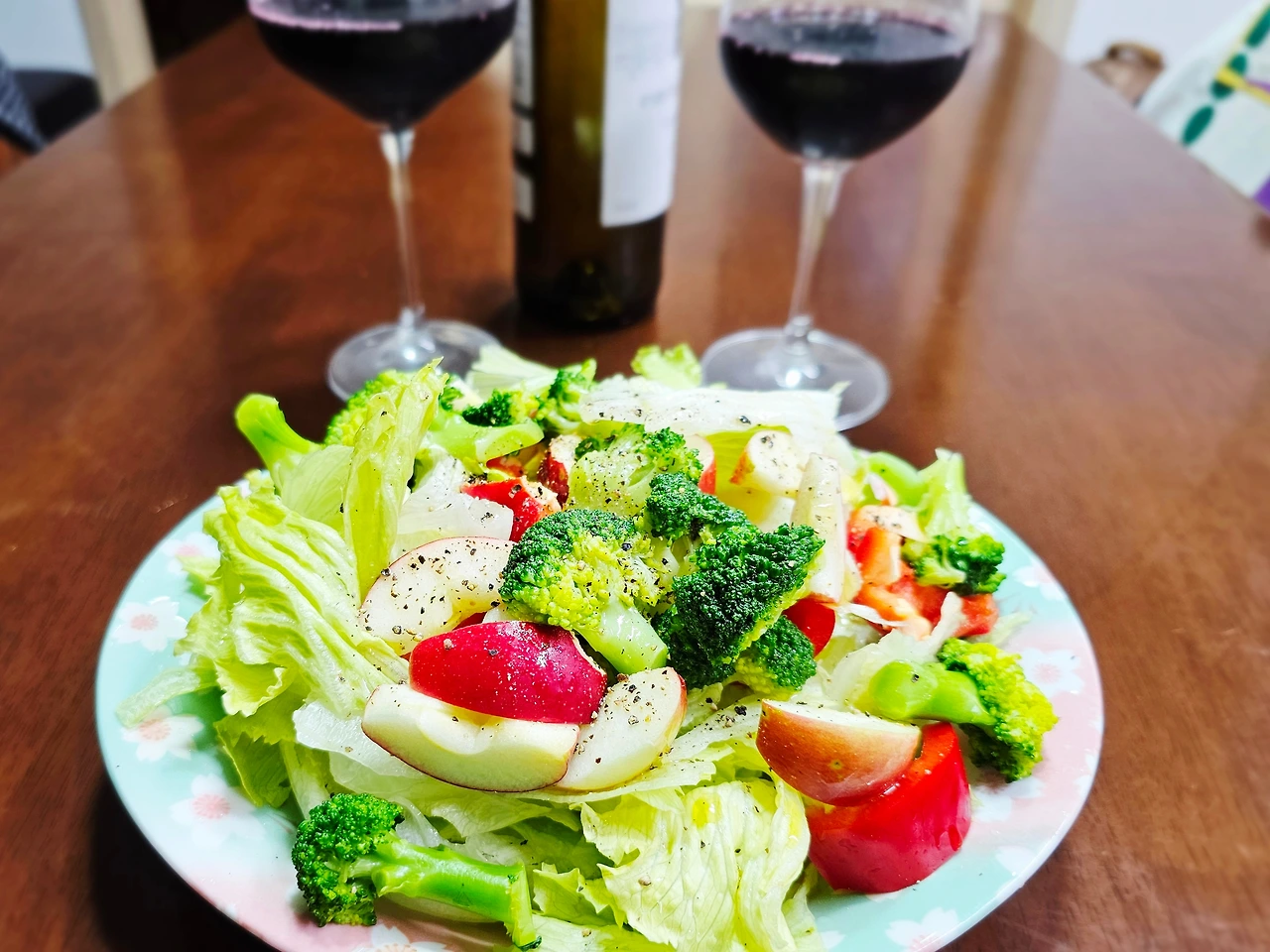 가을 수확으로 한창 분주해야 할 요즘 날씨 덕분에 여유가 생겨 자주 동네 산책을 나선다. 산책 다녀오는 날이면 한 번도 빈손으로 돌아온 적이 없다. 쌈배추, 미니사과, 무, 양상추 브로콜리 도라지 등 종류도 다양하다. 어느 하루는 사과 농장에서 따온 아삭하고 달콤한 미니 사과 맛에 반해서 기쁘고, 또 어느 날은 밭에서 갓 베어온 양상추가 생겼으니 집으로 돌아오자마자 신선한 샐러드 만들어 와인 한 잔 하니 세상 부러울 것 없이 행복하다. 쌈배추를 넉넉하게 얻어온 날은 겉절이도 만들어 먹고, 올여름엔 우리 집 놀이터에서도 봄에 씨앗을 뿌리고 모종을 심은 작물들이 풍성하게 열렸다. 그렇게 넘치도록 푸짐한 먹거리 행진은 이렇게 가을까지 이어지고 있다. 마음 넉넉한 부자 된 기분이다. 따로 장 보러 나설 일이 거의 없었다.