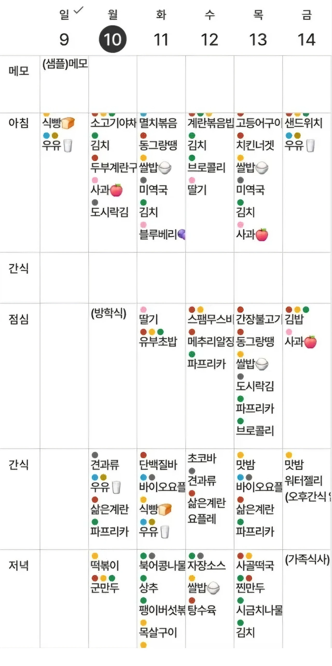 (예전에는 일주일치 식단표를 어플로 작성했다.)