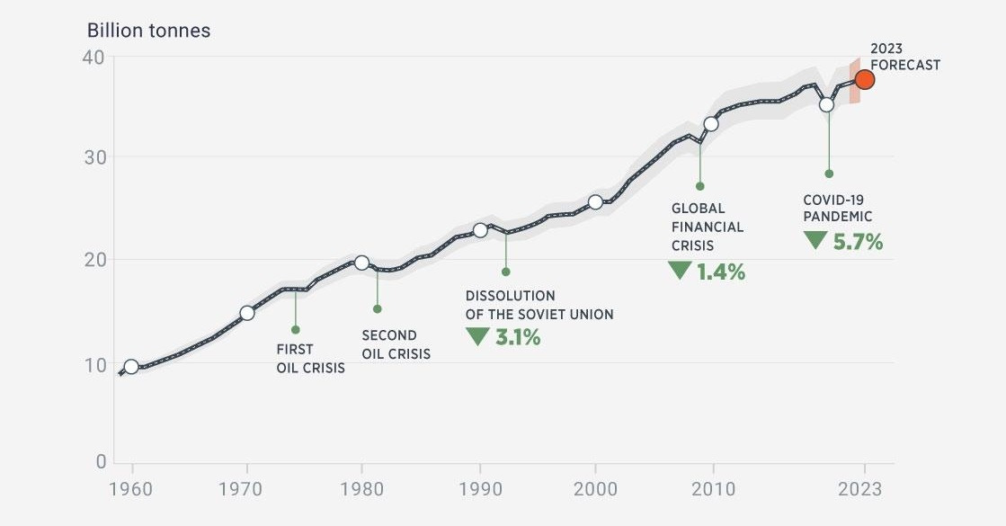 전 세계 화석연료 기반 이산화탄소 배출량 (출처: Global Carbon Project)