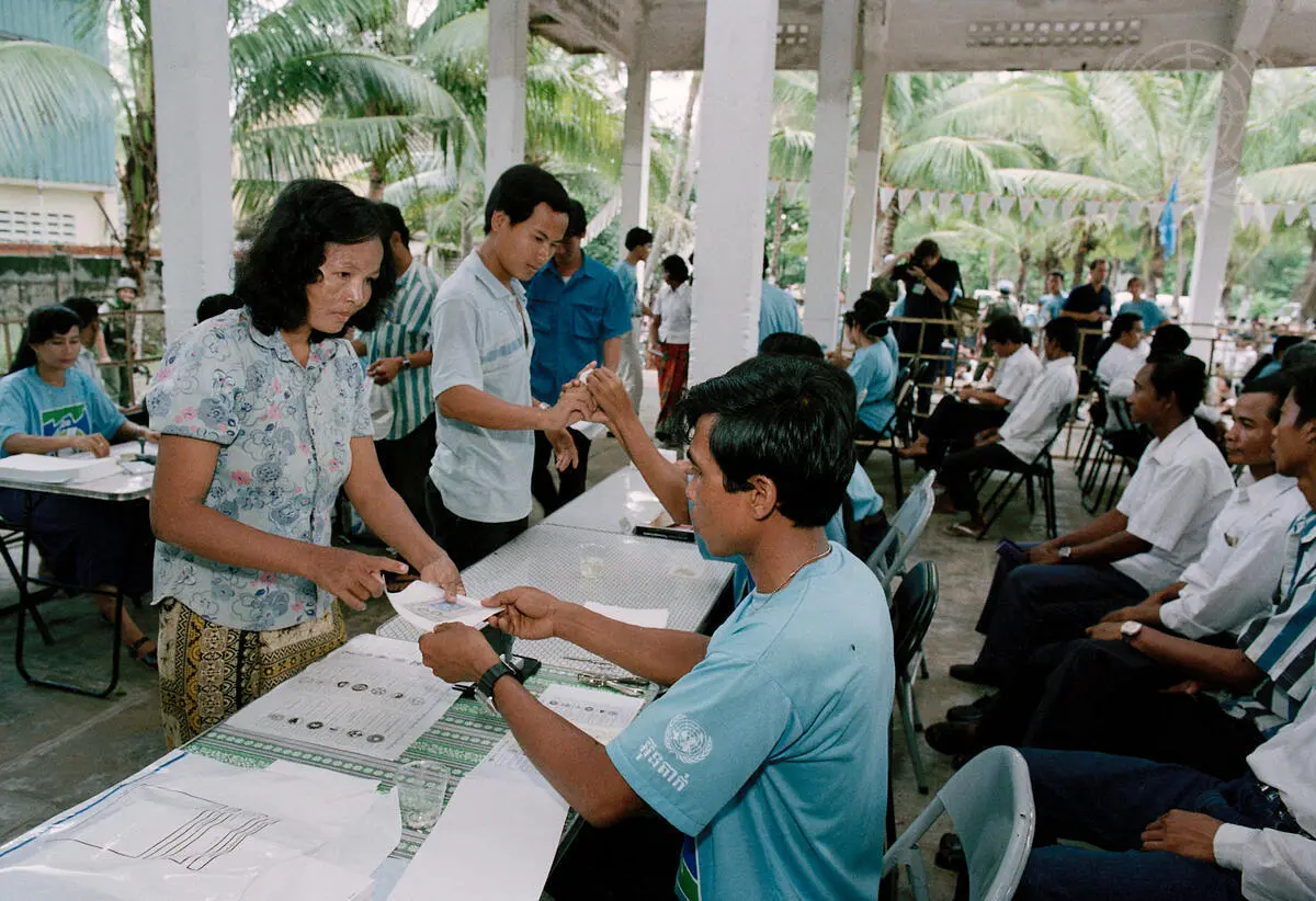 1990년대 초 소련 및 동유럽 지역의 공산권 붕괴에 고무된 서구 선진국들은 새로운 희망의 씨앗을 캄보디아에 심어주고자 대대적인 지원을 하게 되는데요. 1991년 파리 평화 협정을 통해 캄보디아의 내전을 종식시킨 국제사회는, 유엔 캄보디아 과도통치기구(UNTAC)라는 이름의 기관을 설치해 1993년 캄보디아에서 처음으로 민주주의에 입각한 선거를 실시하게 됩니다.