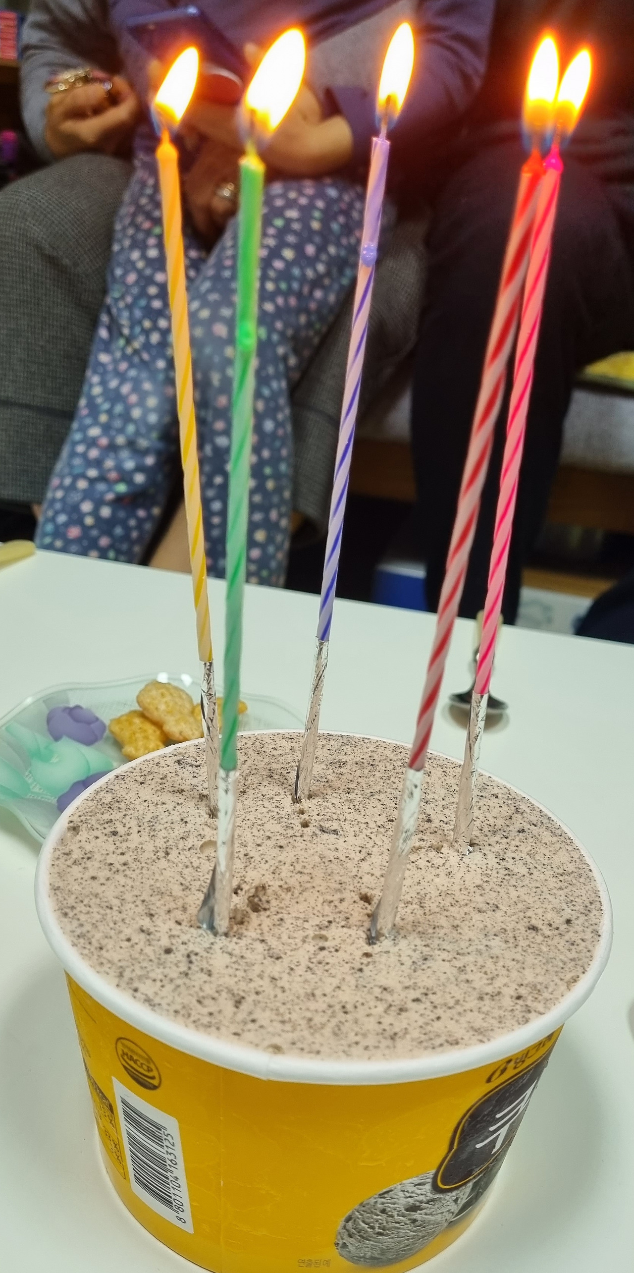 전혀 어색하지 않았다. 오히려 익숙했다. 늘 푸른 소나무처럼 겨울에도 내 생일 축하해주던 가족들이 생각났고, 입시의 고단함을 잊게 해준 친구들이 떠올랐다. 내 안에 아이가 웃고 있었다. 그 사이 이런 저런 이야기와 박수에 촛불이 다시 요동쳤다. '바람 앞에 등불' 이라는 말이 무색하게 지금의 걱정은 나중으로 미루고, 지금 나에게 오는 축하의 노래, 챙김의 말을 온전히 받아들였다.