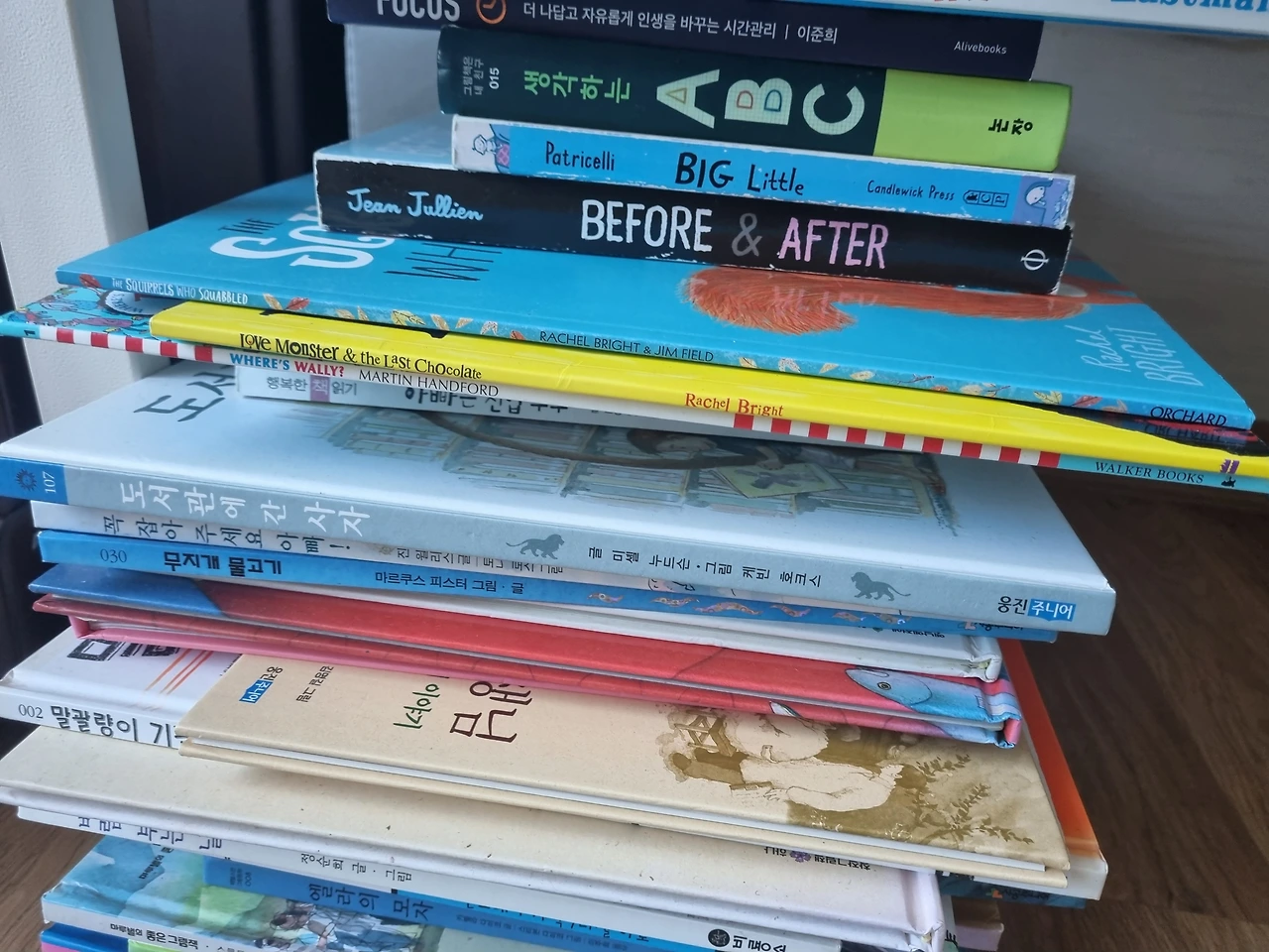 잠자기 전 뽑아와 서로 읽어달라고 조르던 책들.