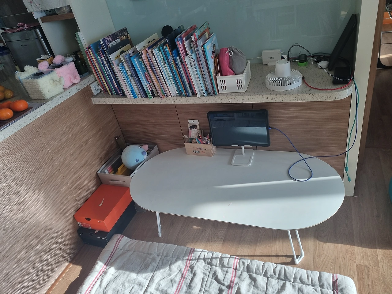 과감히 식탁을 치우고 그곳을 그림책 공간으로 꾸몄다.