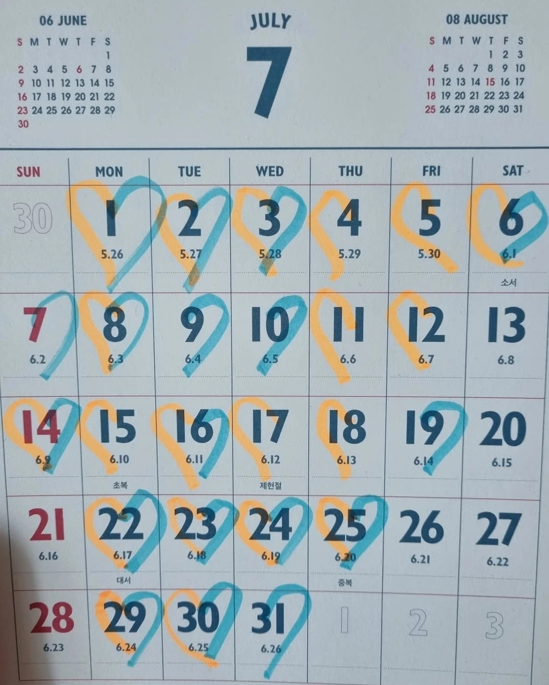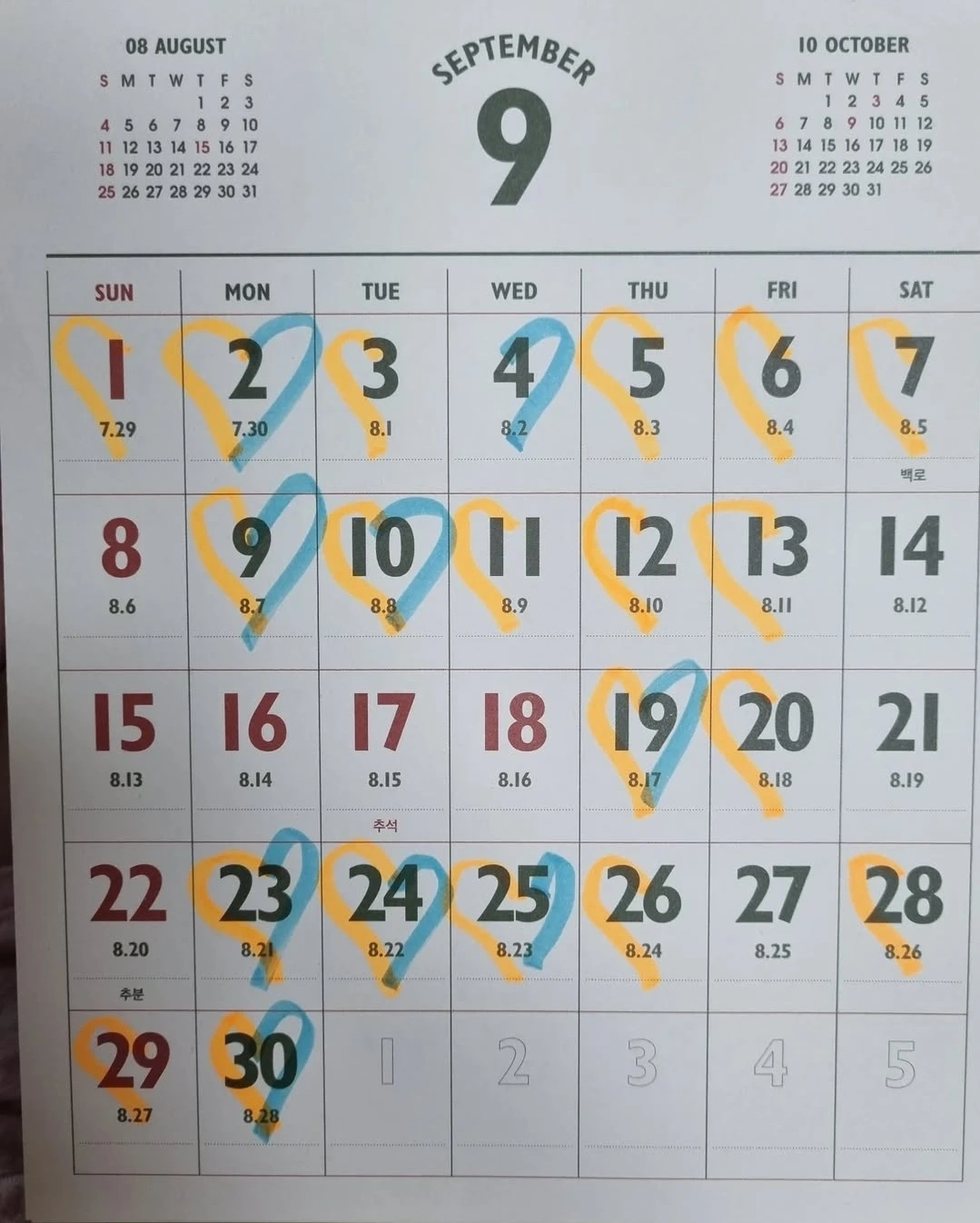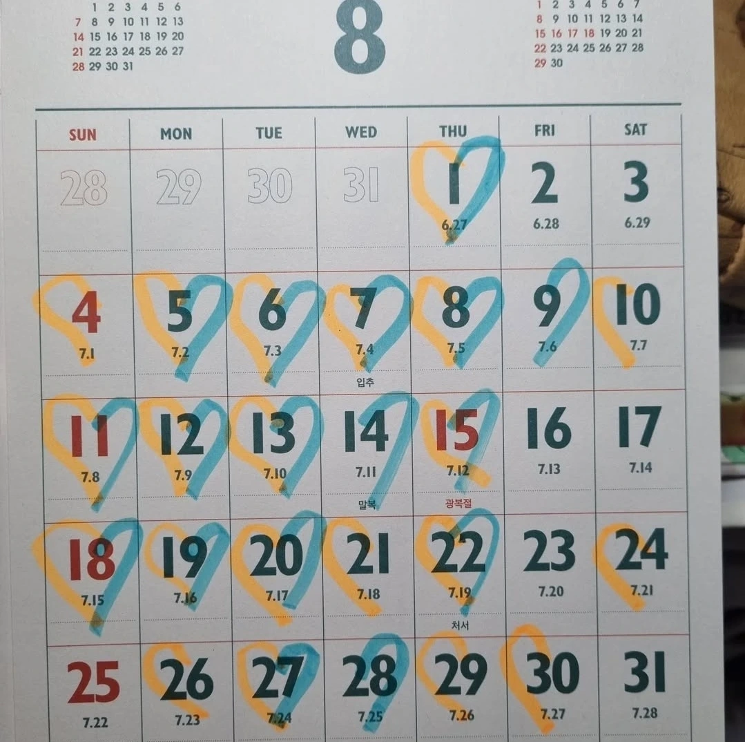 운동한 날에 각자의 하트 반 쪽을 그려주자고.