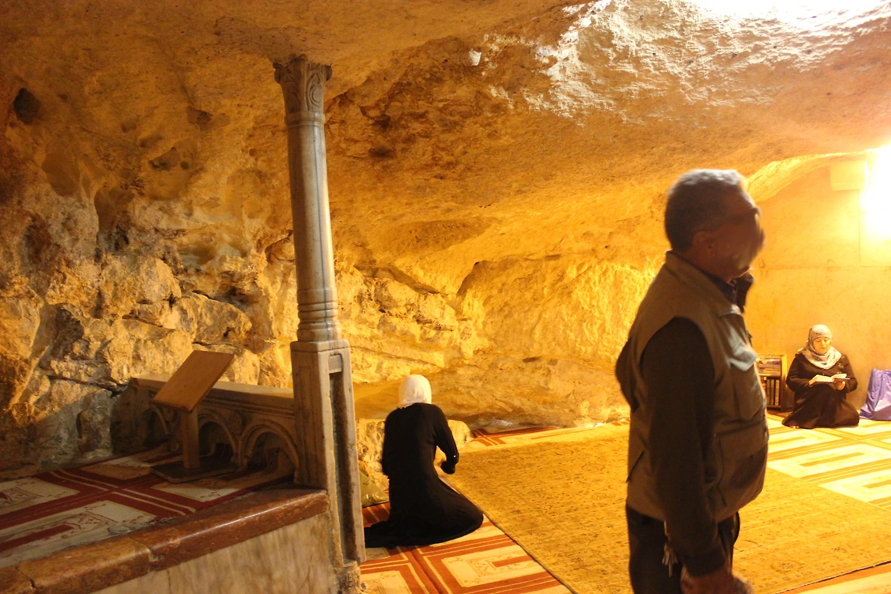 바위 안에 이런 동굴이 있다니 신기하지요? 무슬림들이 꾸며 놓아서 더 신비한 느낌이 듭니다. 바위돔이 비록 모스크는 아니지만, 바위가 워낙 신성하게 여겨지다 보니 이곳에서 기도드리는 무슬림도 볼 수 있습니다. 이들한테는 황금따위보다 바위가 훨씬 중요하겠지요?