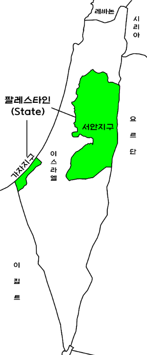 이스라엘 국토 : 팔레스타인 땅에서 서안과 가자지구를 제외한 면적