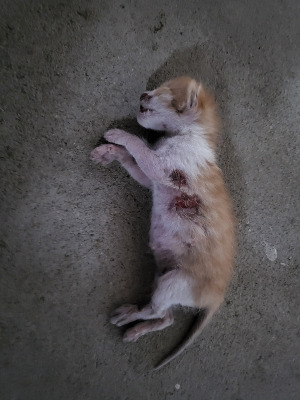 새끼들은 다행히 건강해 보였습니다. 하지만 사흘째 되는 날, 어머니께서 마당에 나와 보니 새끼 한 마리가 피를 흘리며 쓰러져 있었습니다. CCTV로 확인해 보니 마당에서 지내고 있는 다른 고양이의 소행이었습니다.