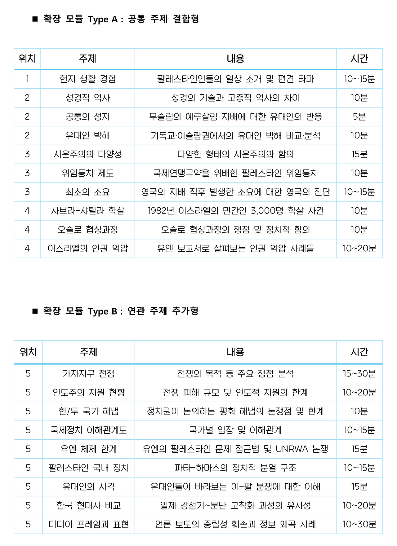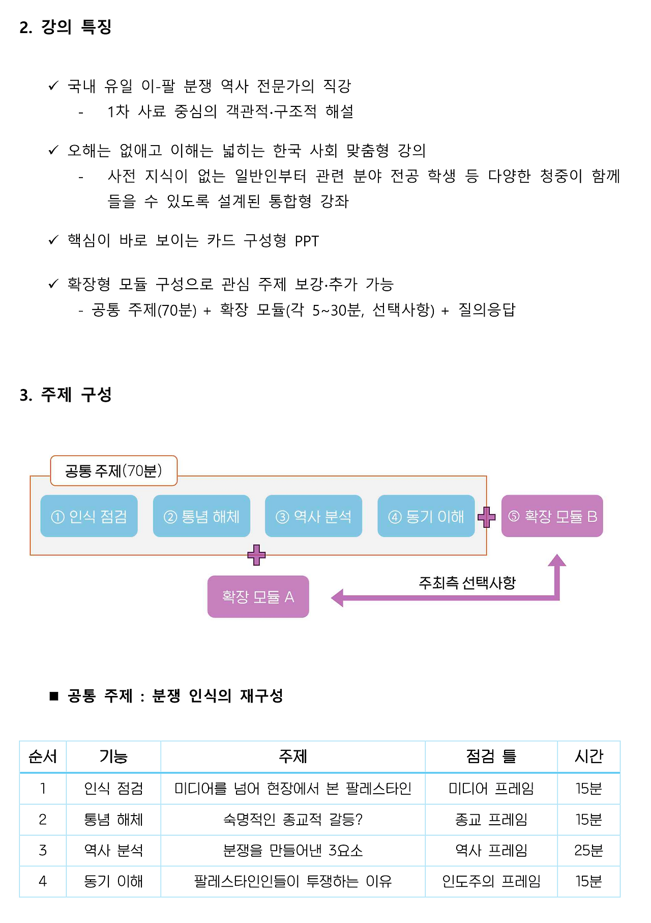 공통 주제(70분)에 관심 주제를 보강/추가하는 확장 모듈을 설계하였습니다.
