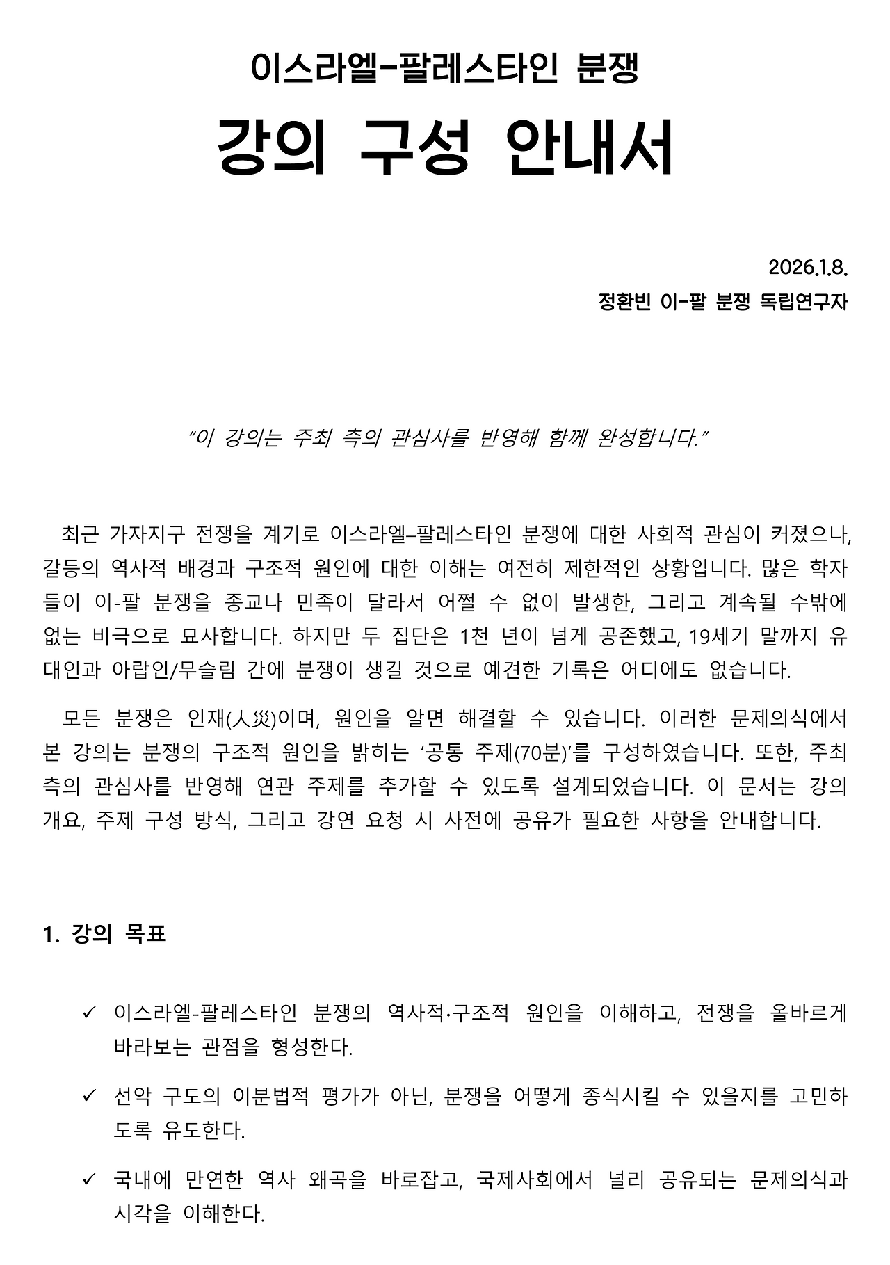 2026년 새해맞이 기념으로 "강의 구성 안내서"를 만들어보았습니다.