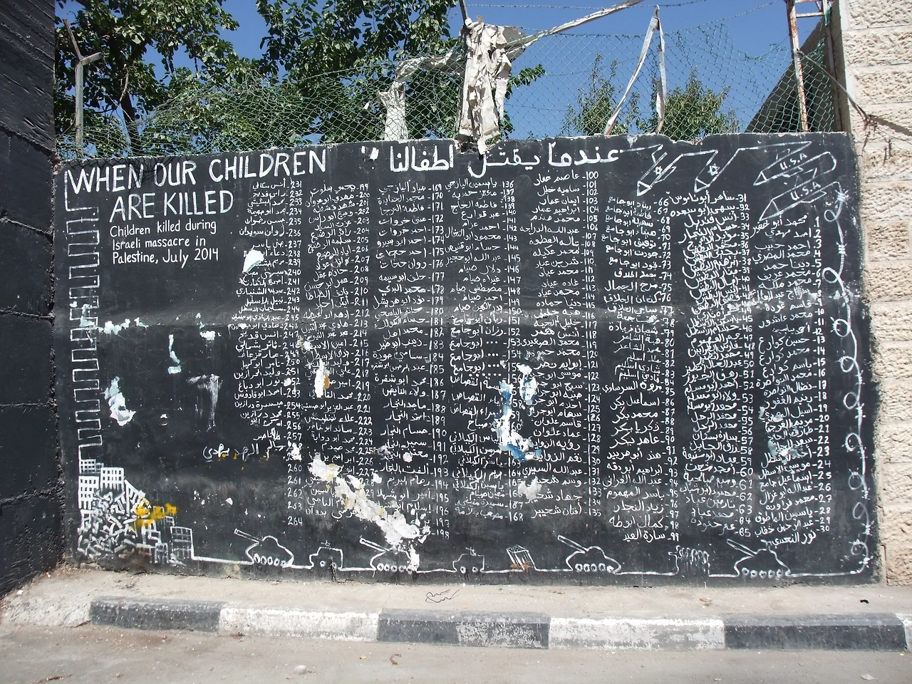 사진. 베들레헴 인근 아이다 난민촌에서 건립한, 2014년 이스라엘에 학살당한 아동추모비